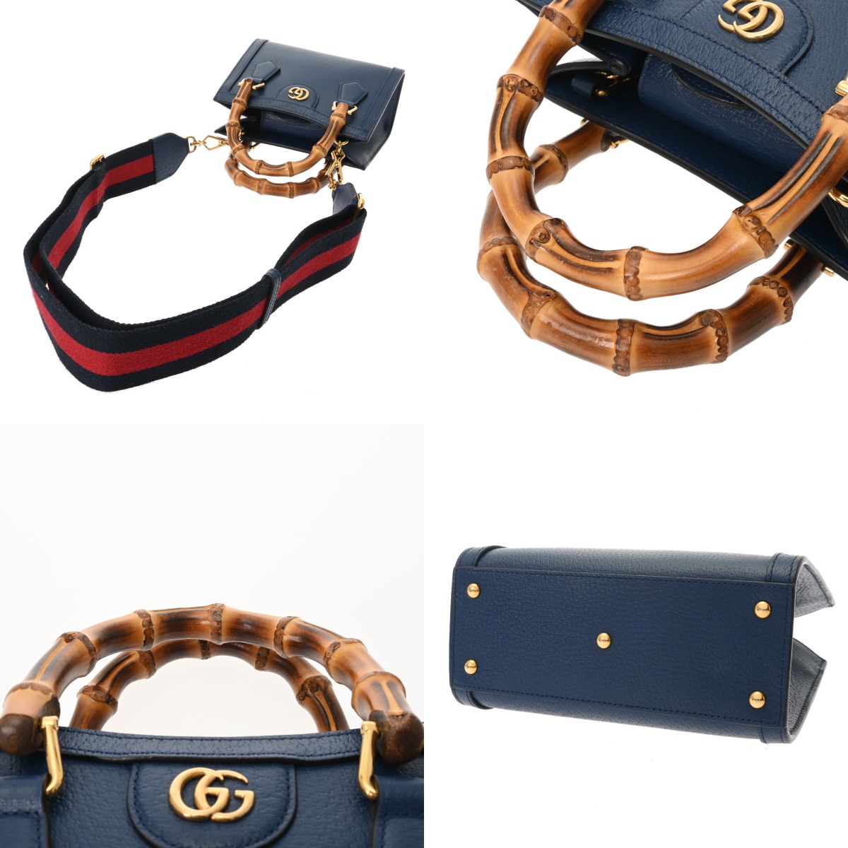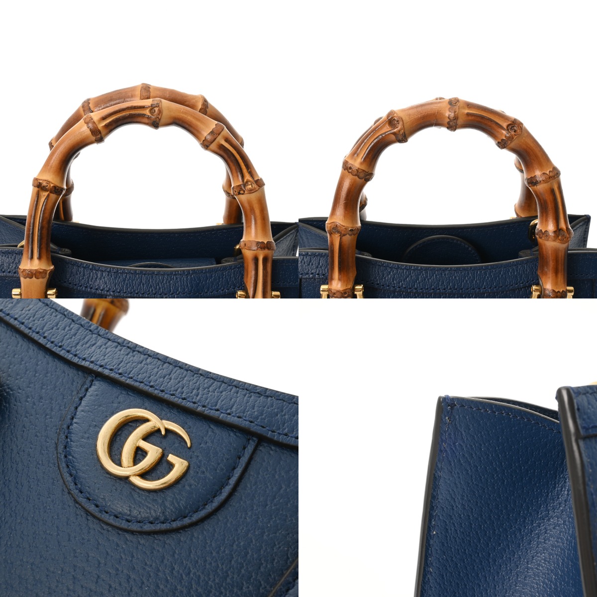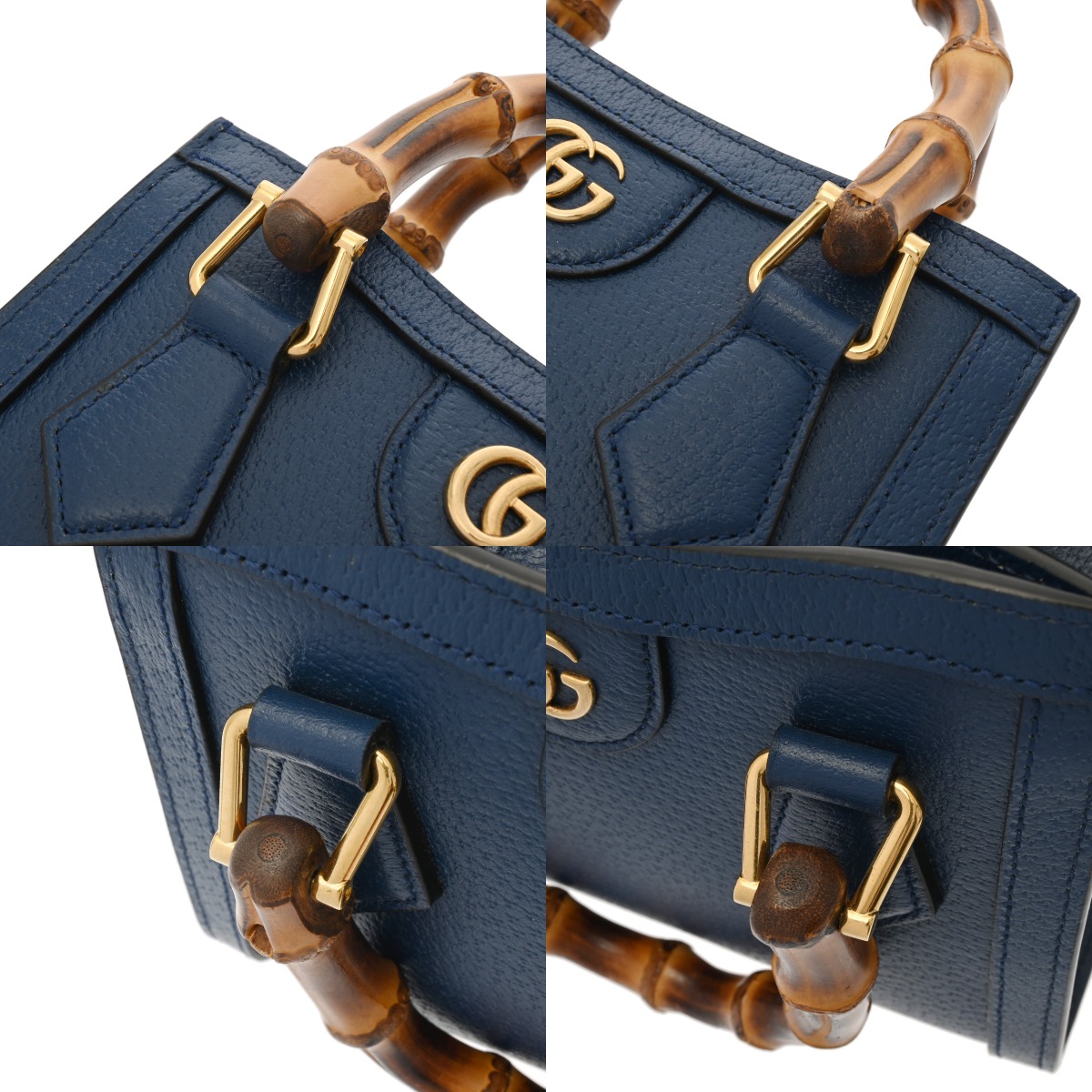グッチ ダイアナ ミニ トートバッグ 3WAY ダークブルー系 702732 レザー/バンブー レディース バッグ 【中古】【bag】