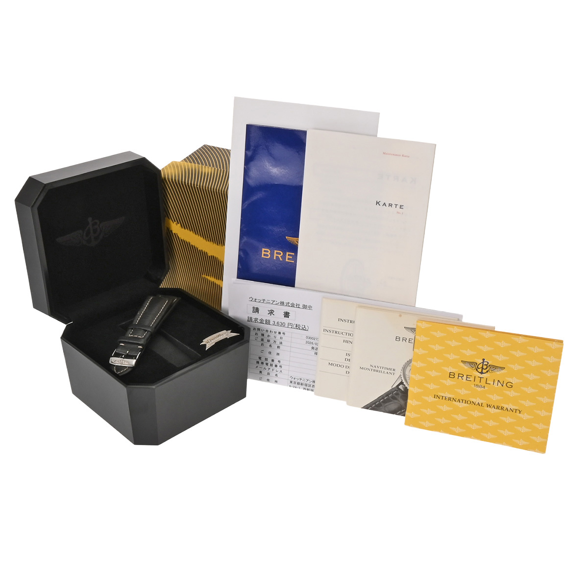 - メーカー保証書( 1996年9月国内購入) / 替えベルト( レザー/ブラック(使用感有)) / メーカー箱