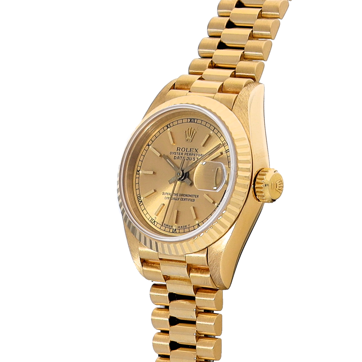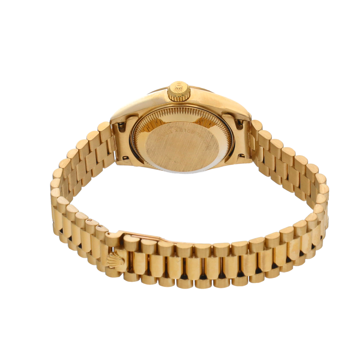 それから四半世紀の歳月を経て進化したこの世代のレディ デイトジャストの中でも、このゴールドモデルはもちろん特別な存在であり、最高峰の証であるプレジデントブレスレットがフィットされているほか、様々なジュエリーピースのベースモデルとして多く用いられています。 -