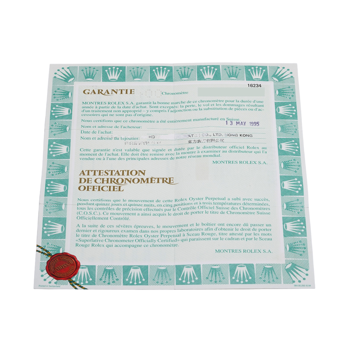 - メーカー保証書( 1995年5月海外購入)
