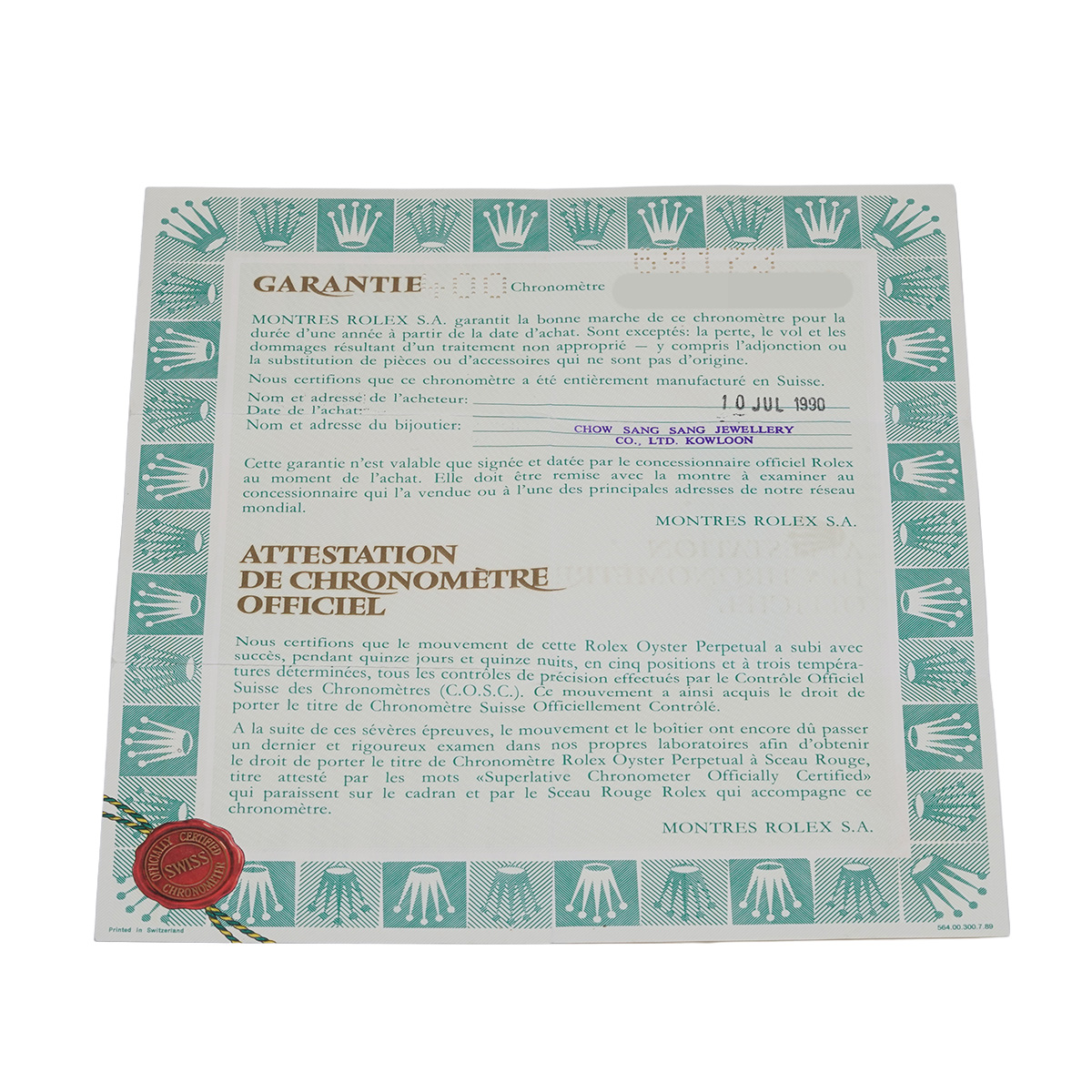 - メーカー保証書( 1990年7月海外購入)