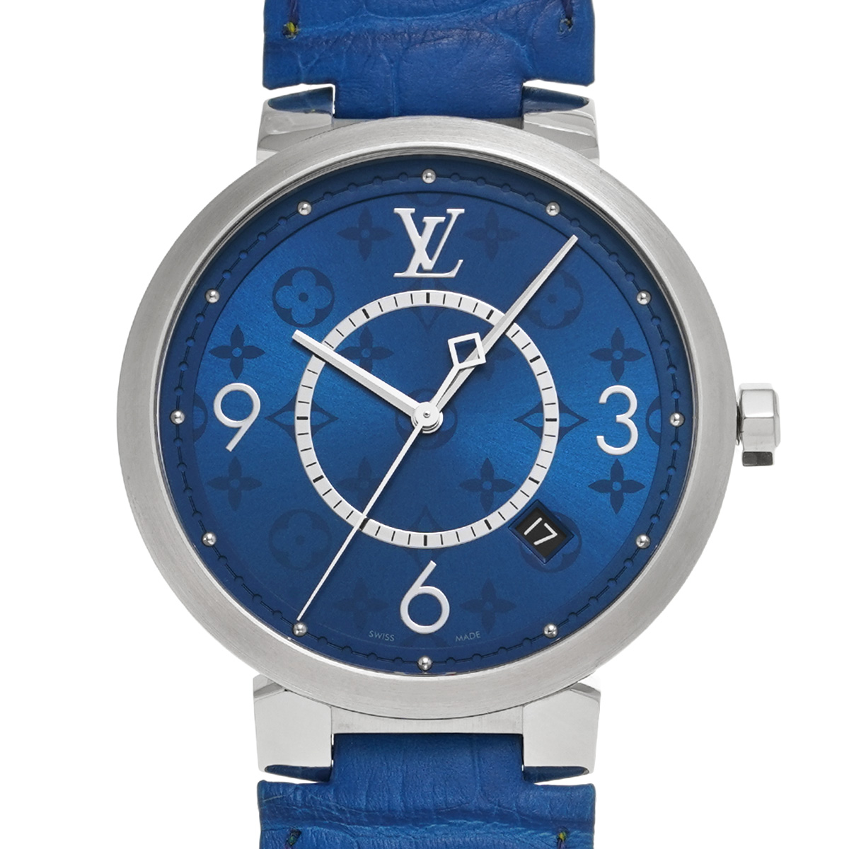 ルイ ヴィトン タンブール スリム モノグラム QA150 ブルー メンズ 時計 【中古】【wristwatch】