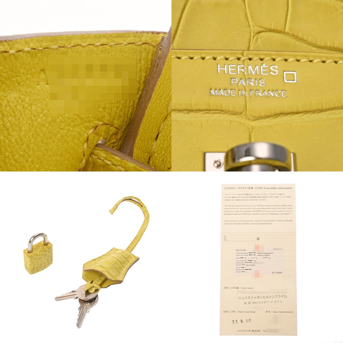 エルメス バーキン 25 ライム アリゲーターマット レディース バッグ 【中古】【bag】