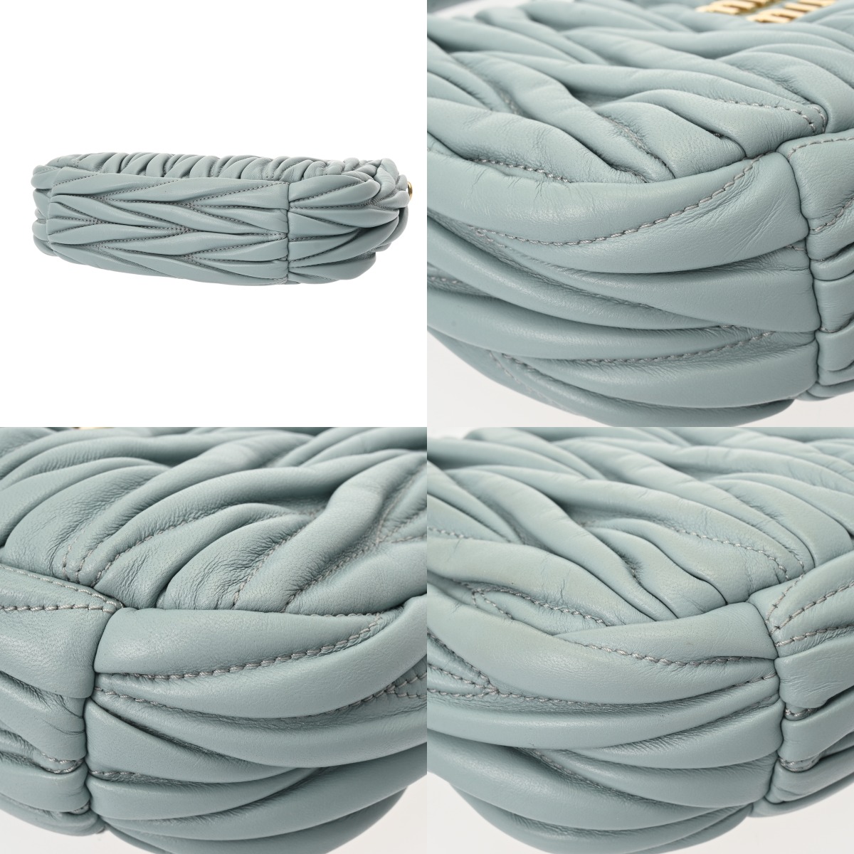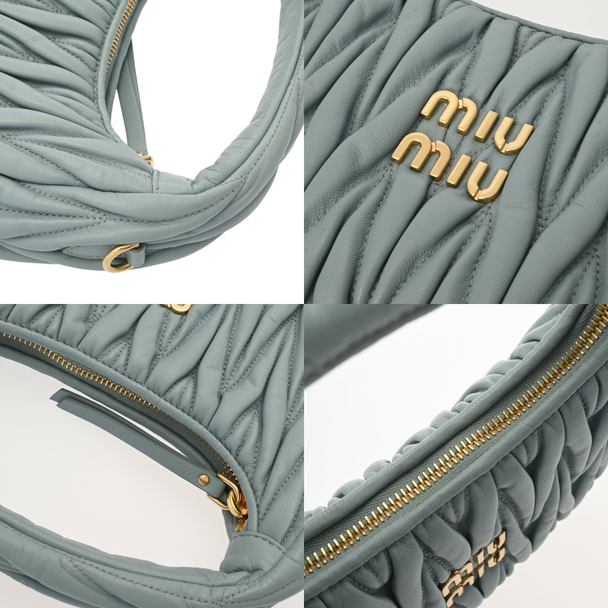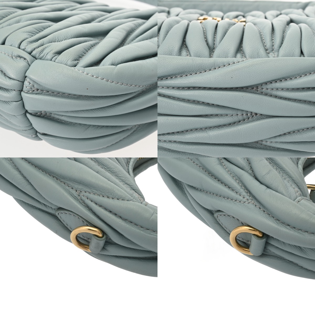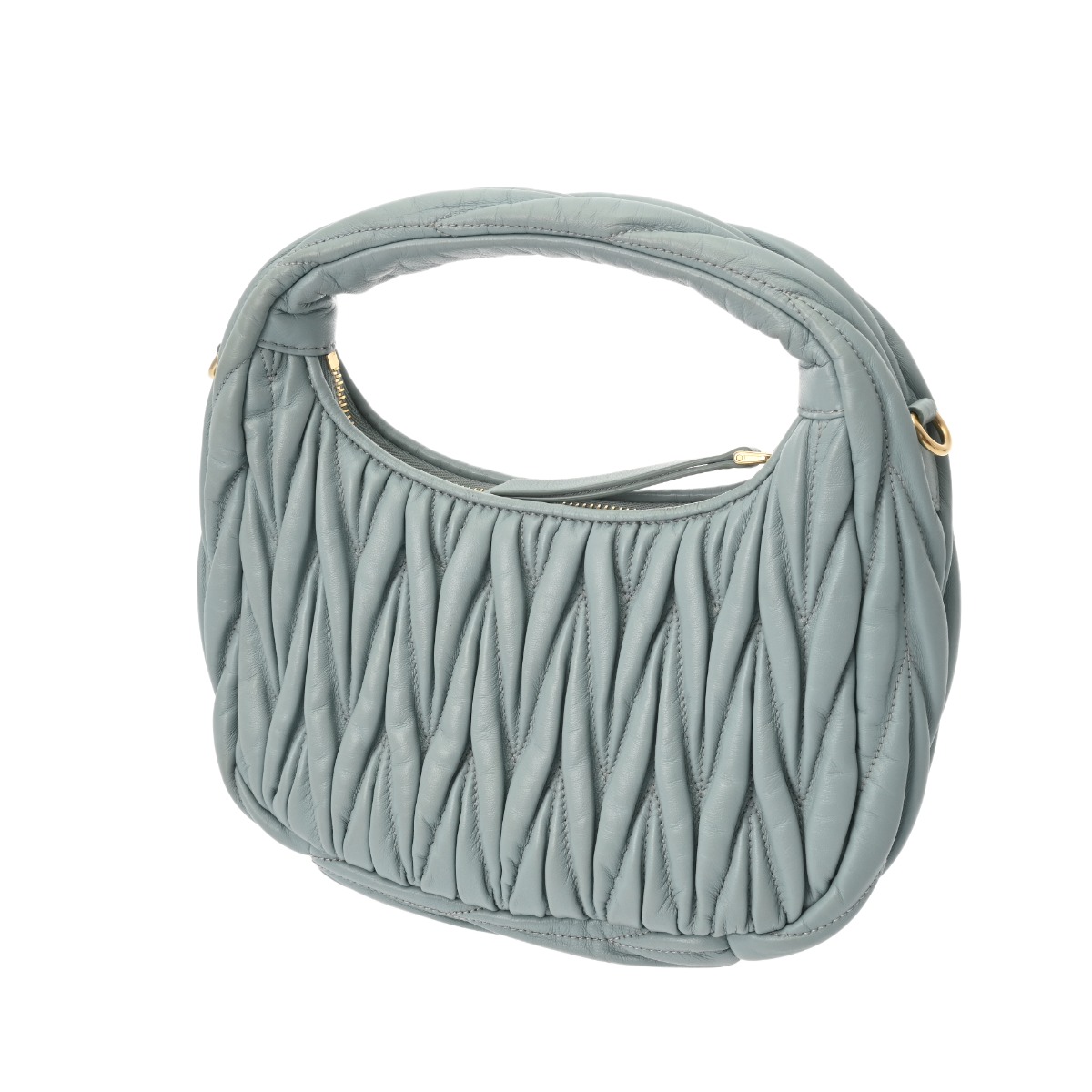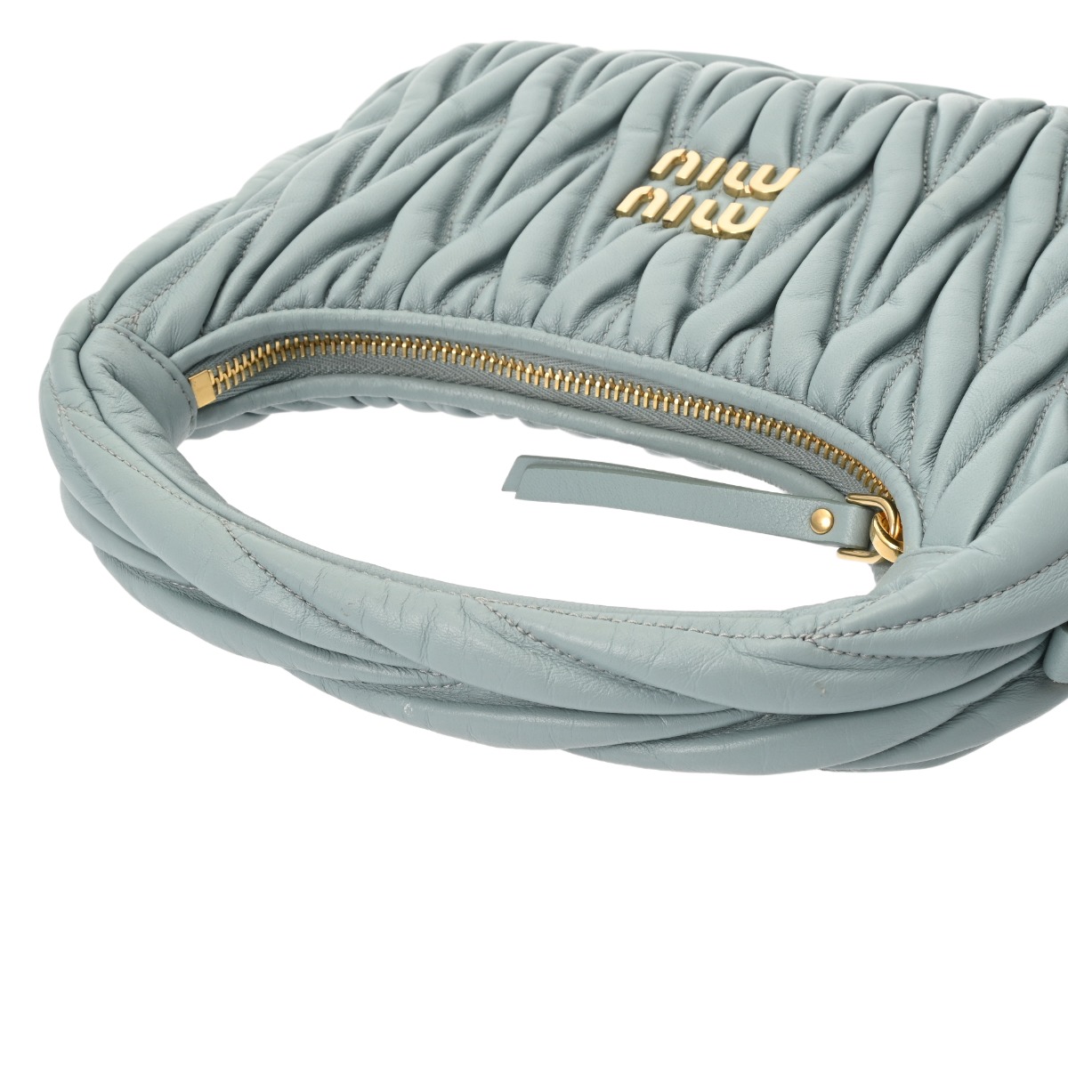 ミュウミュウ ワンダー ホーボーバッグ パウダーブルー 5BC125 マテラッセレザー レディース バッグ 【中古】【bag】