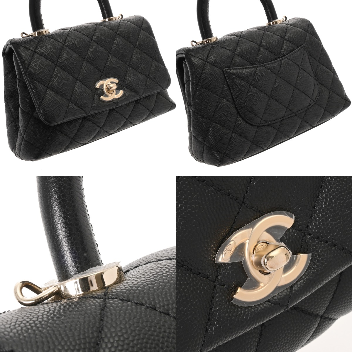 シャネル マトラッセ トップハンドル ミニ フラップバッグ ブラック AS2215 グレインドカーフスキン レディース バッグ 【中古】【bag】