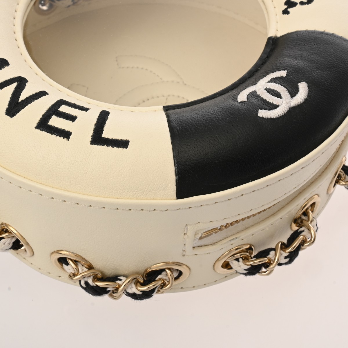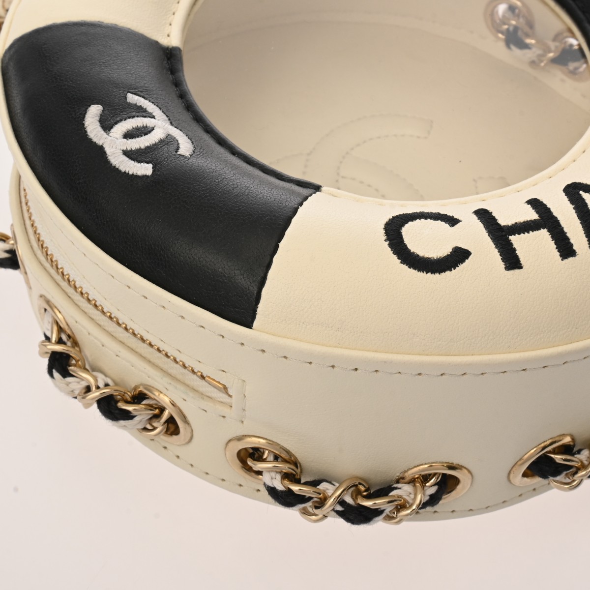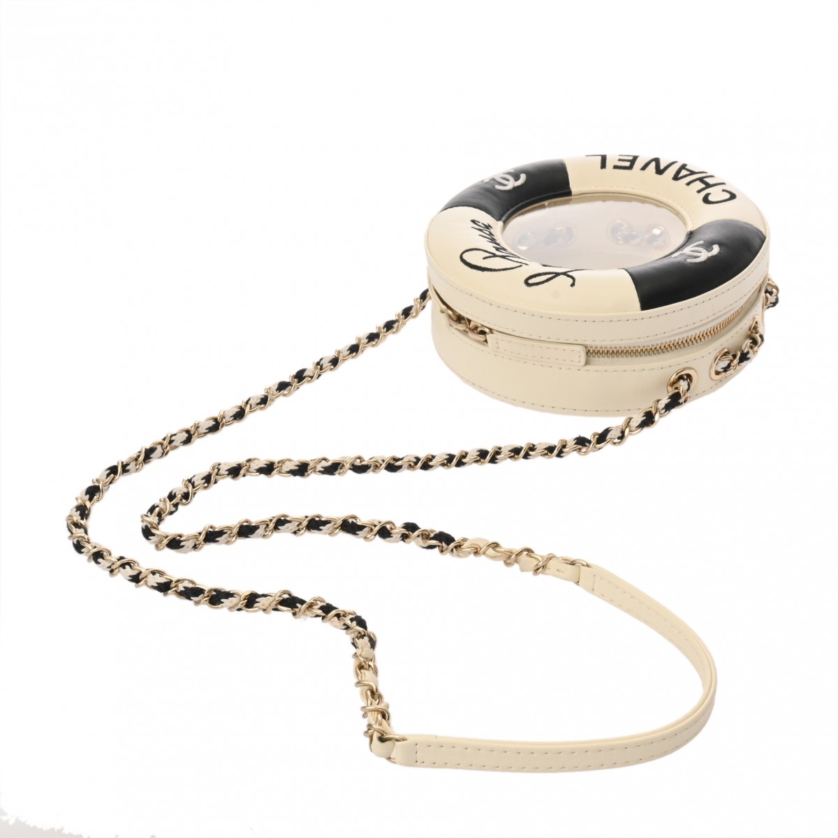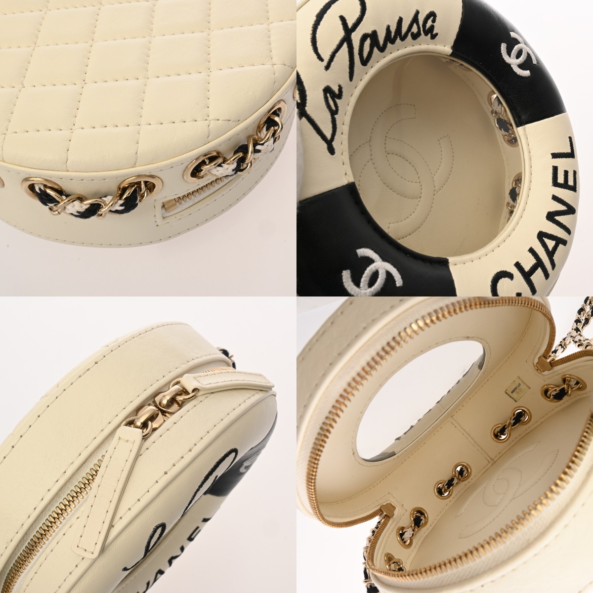 シャネル チェーンショルダー LA PAUSA 2019年 ランウェイクルーズコレクション ホワイト/ブラック カーフスキン レディース バッグ 【中古】【bag】