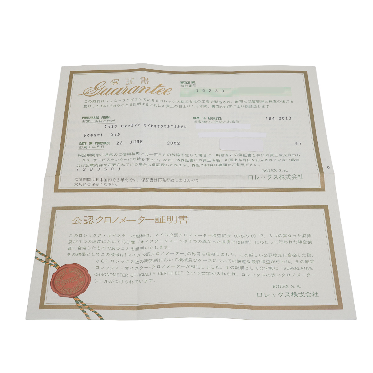- メーカー保証書( 2002年6月国内購入)