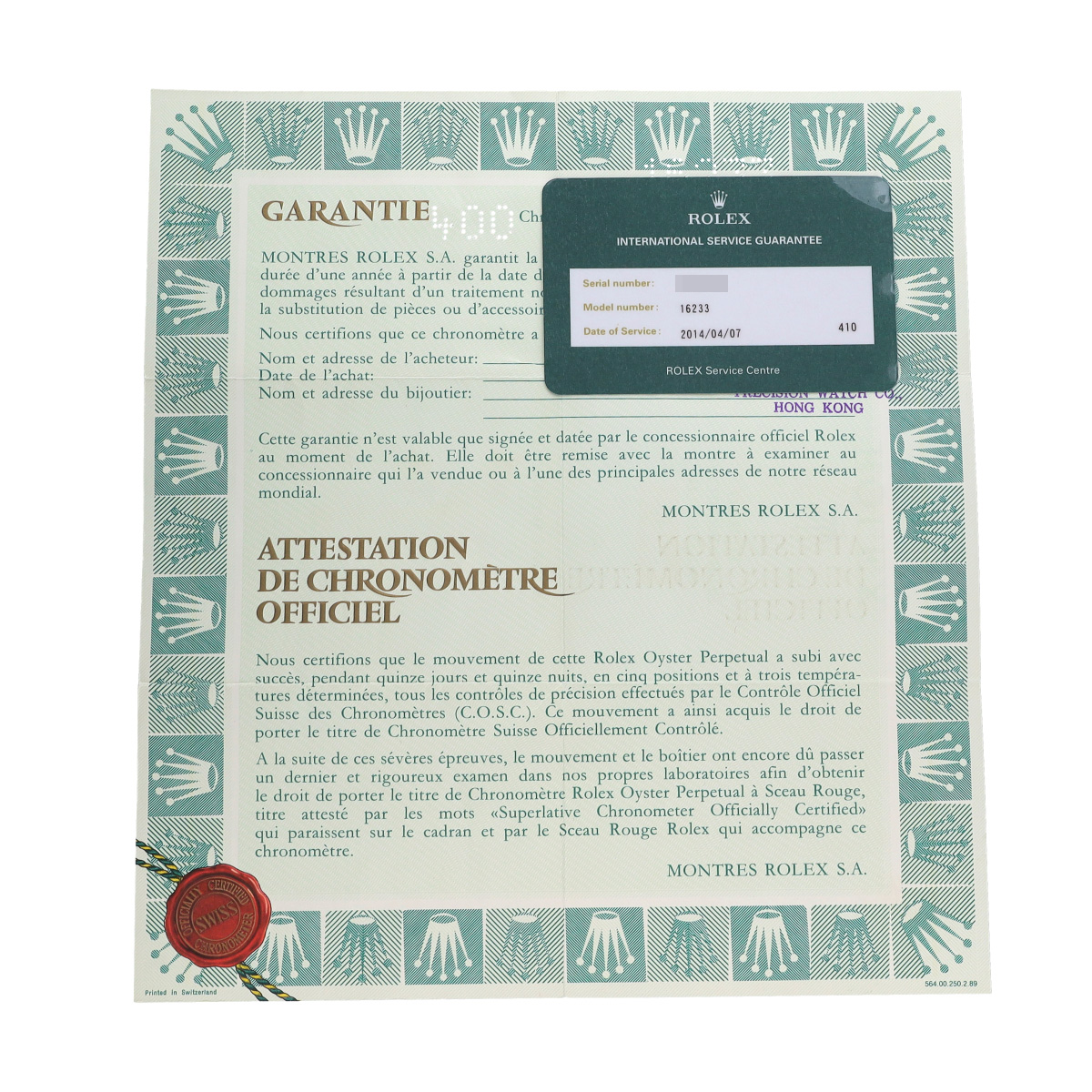 - メーカー保証書( 1989年6月海外購入) / 国際サービス保証書(2014年4月オーバーホール)
