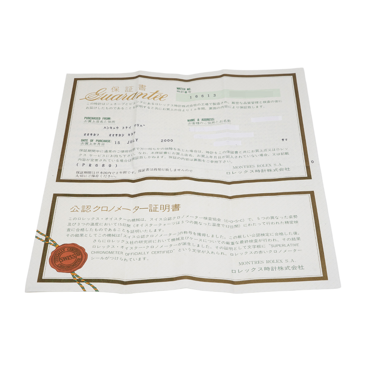 - メーカー保証書( 2000年7月国内購入)