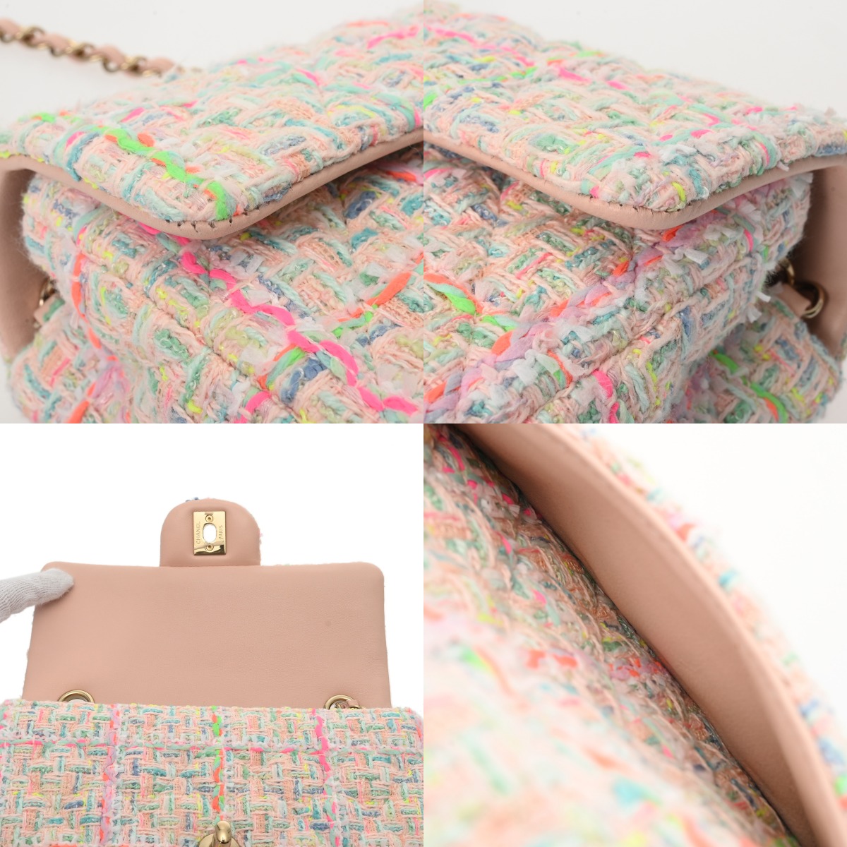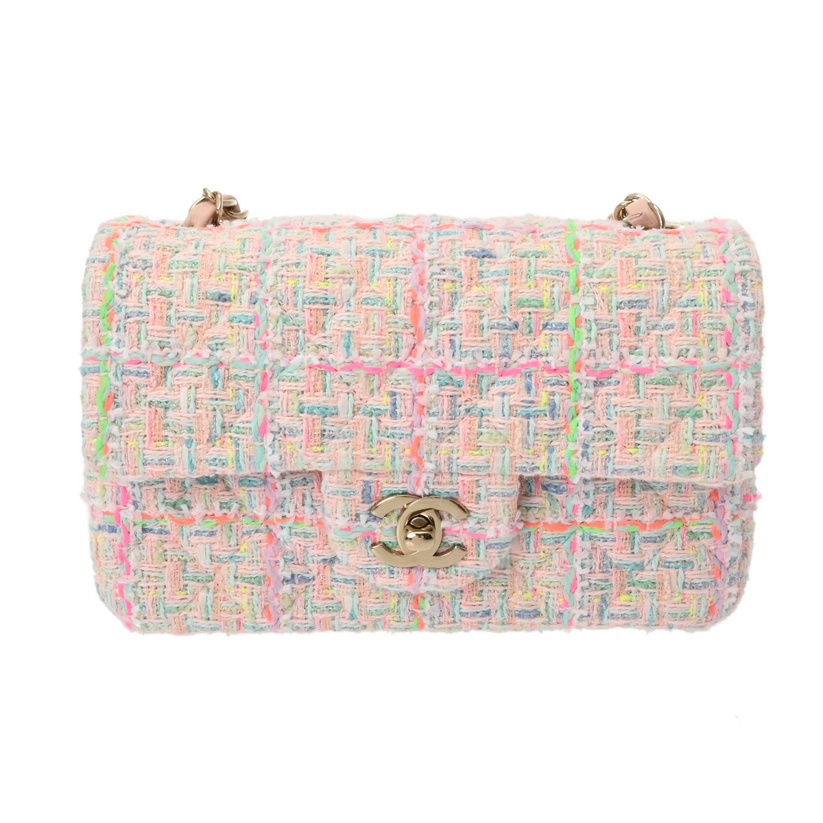 シャネル ミニ クラシック ハンドバッグ 20cm マルチカラー A69900 ツイード レディース バッグ 【中古】【bag】