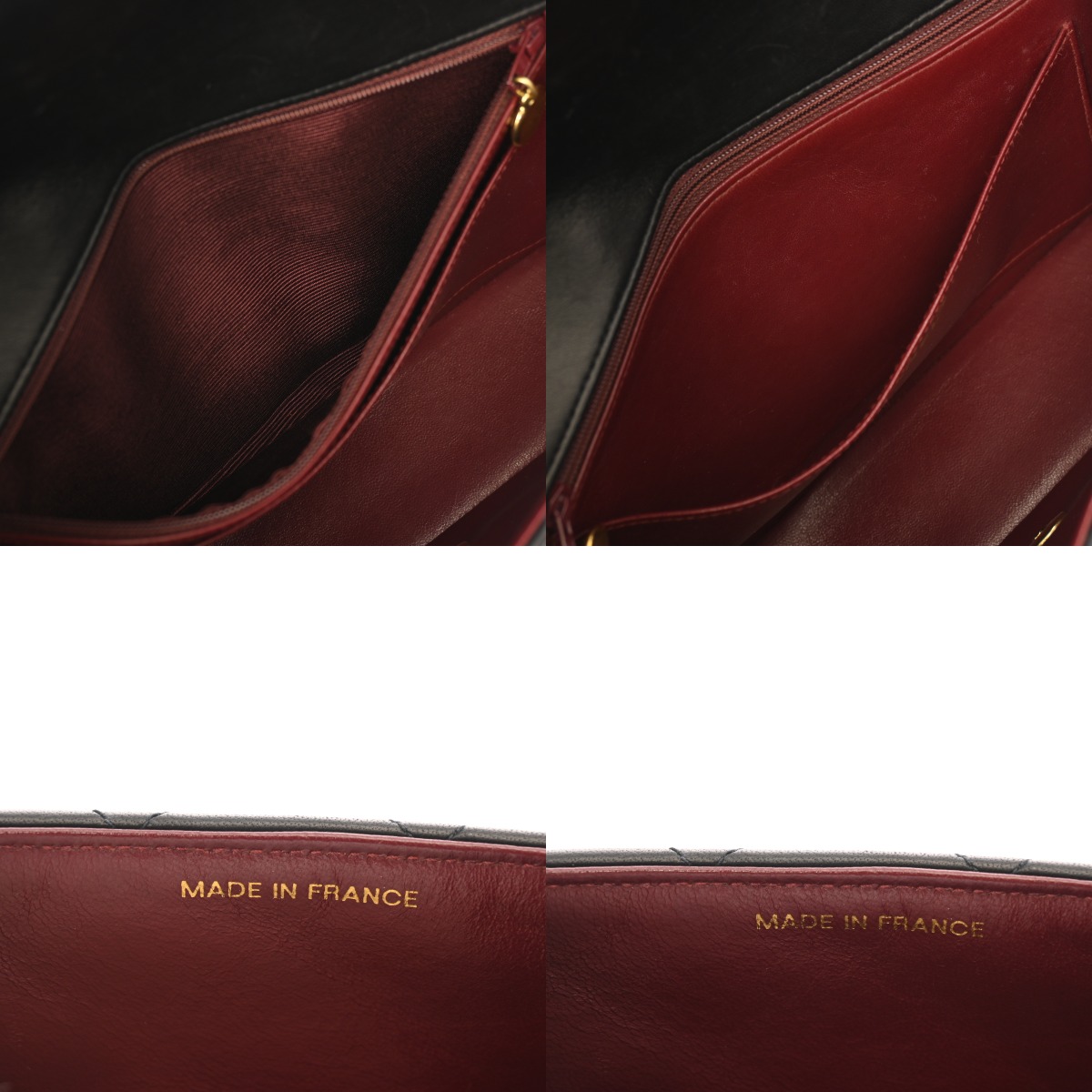 - フラップ裏含めシワ、スレ、薄汚れ、ポケットに広がり、金具にスリキズなど少々使用感がございます。※古いニオイが若干いたします。