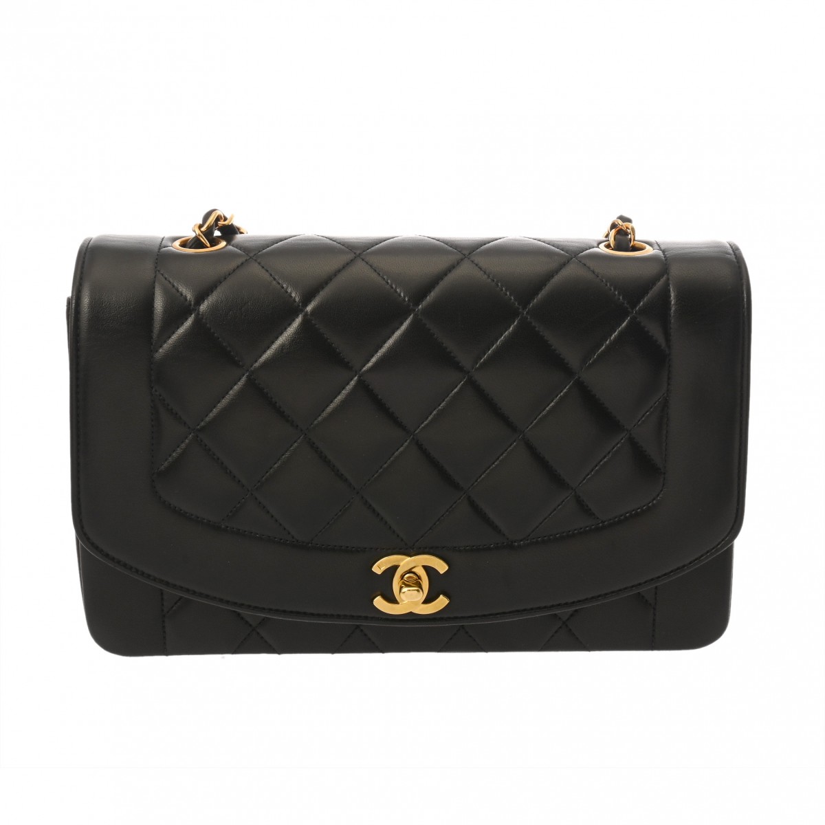 シャネル チェーンショルダー 25cm ダイアナ ブラック A01165 ラムスキン レディース バッグ 【中古】【bag】