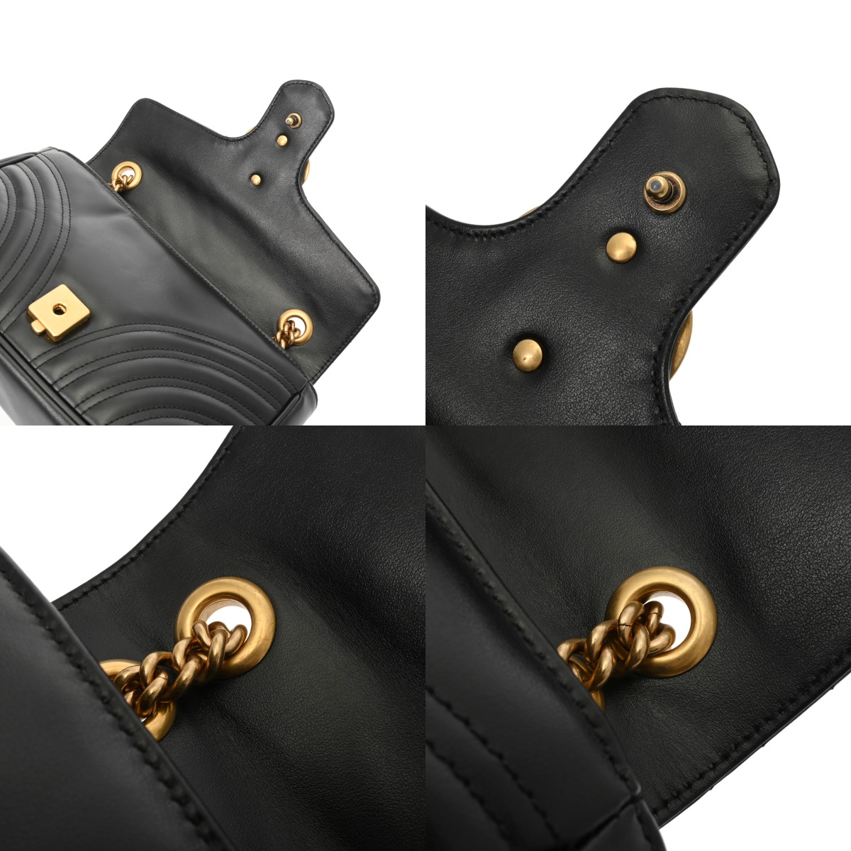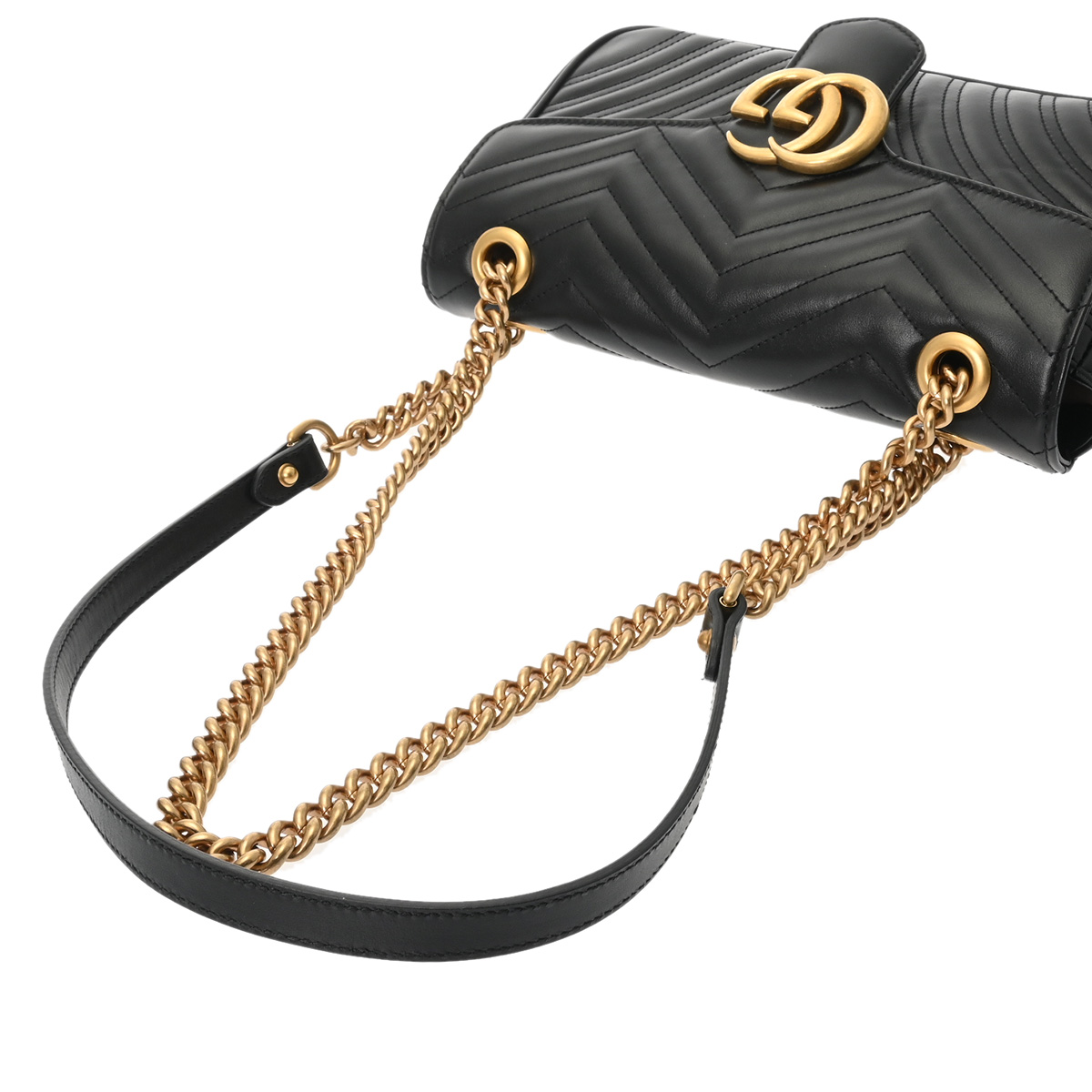 グッチ GGマーモント スモールショルダーバッグ GGマーモント ブラック 443497 キルティングレザー レディース バッグ 【中古】【bag】