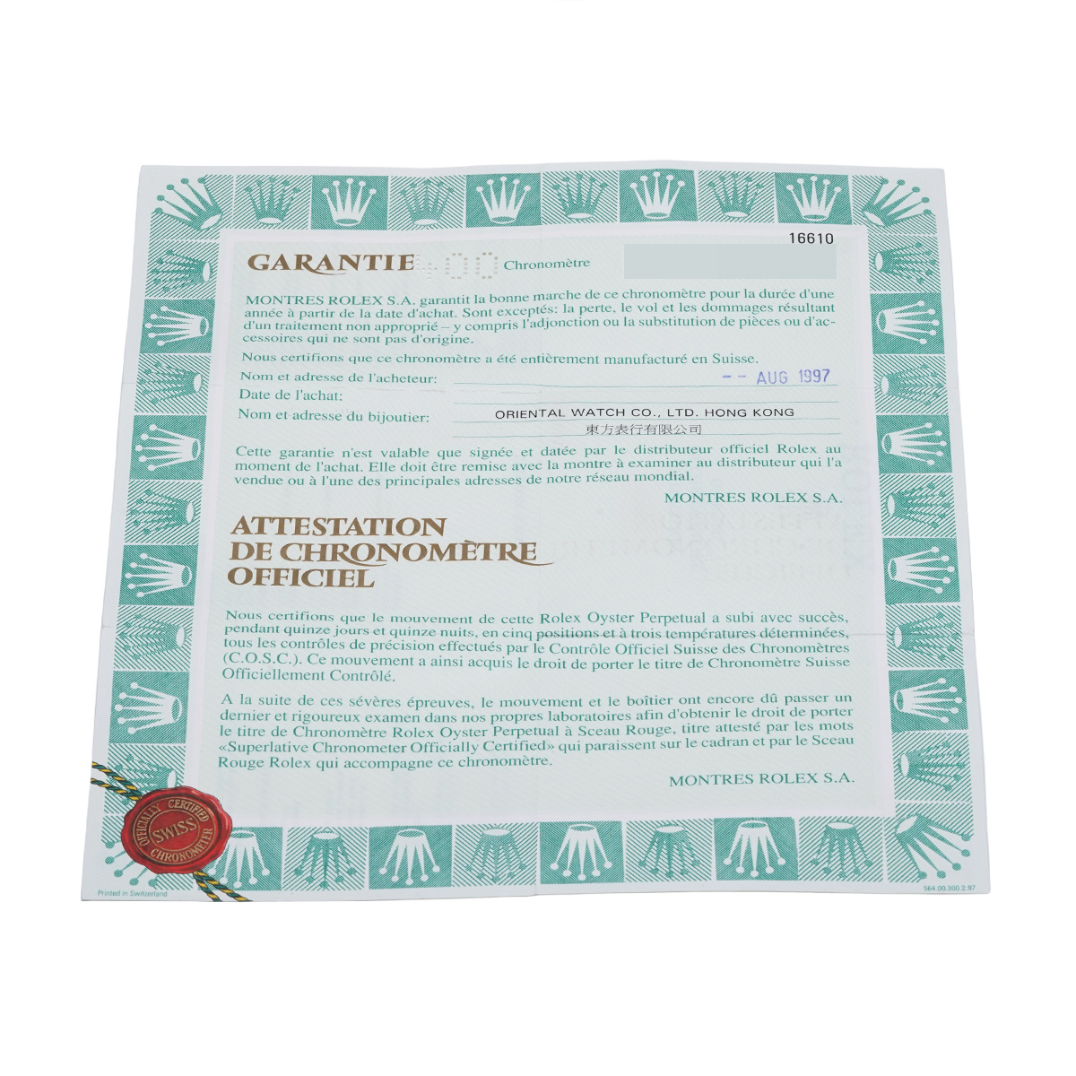 - メーカー保証書( 1997年8月海外購入) / メーカー箱/冊子/タグ