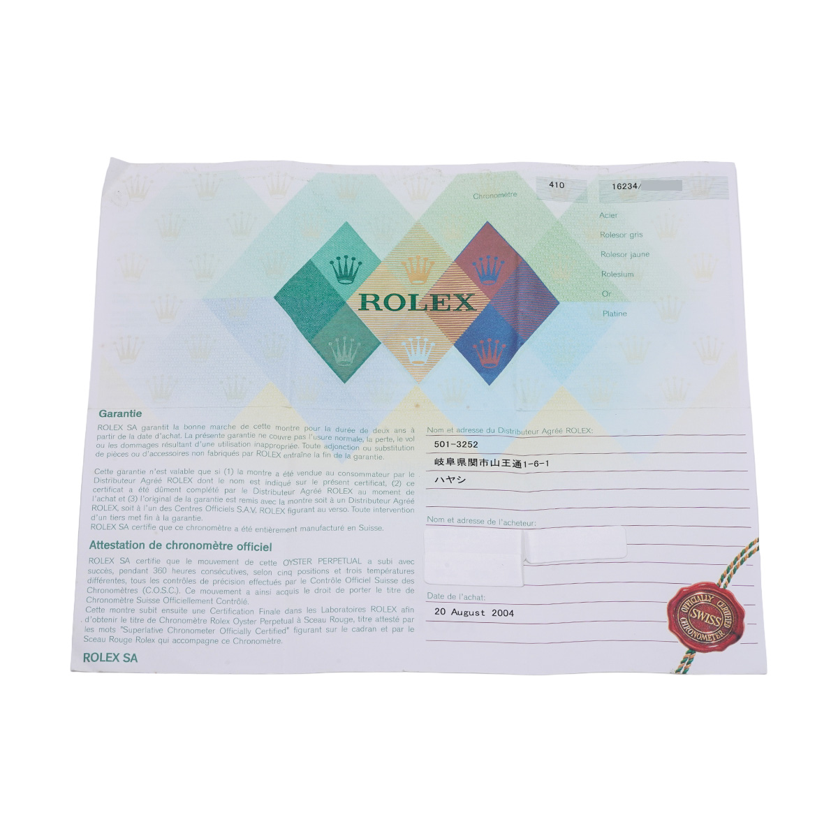 - メーカー保証書( 2004年8月国内購入) / メーカー箱/冊子
