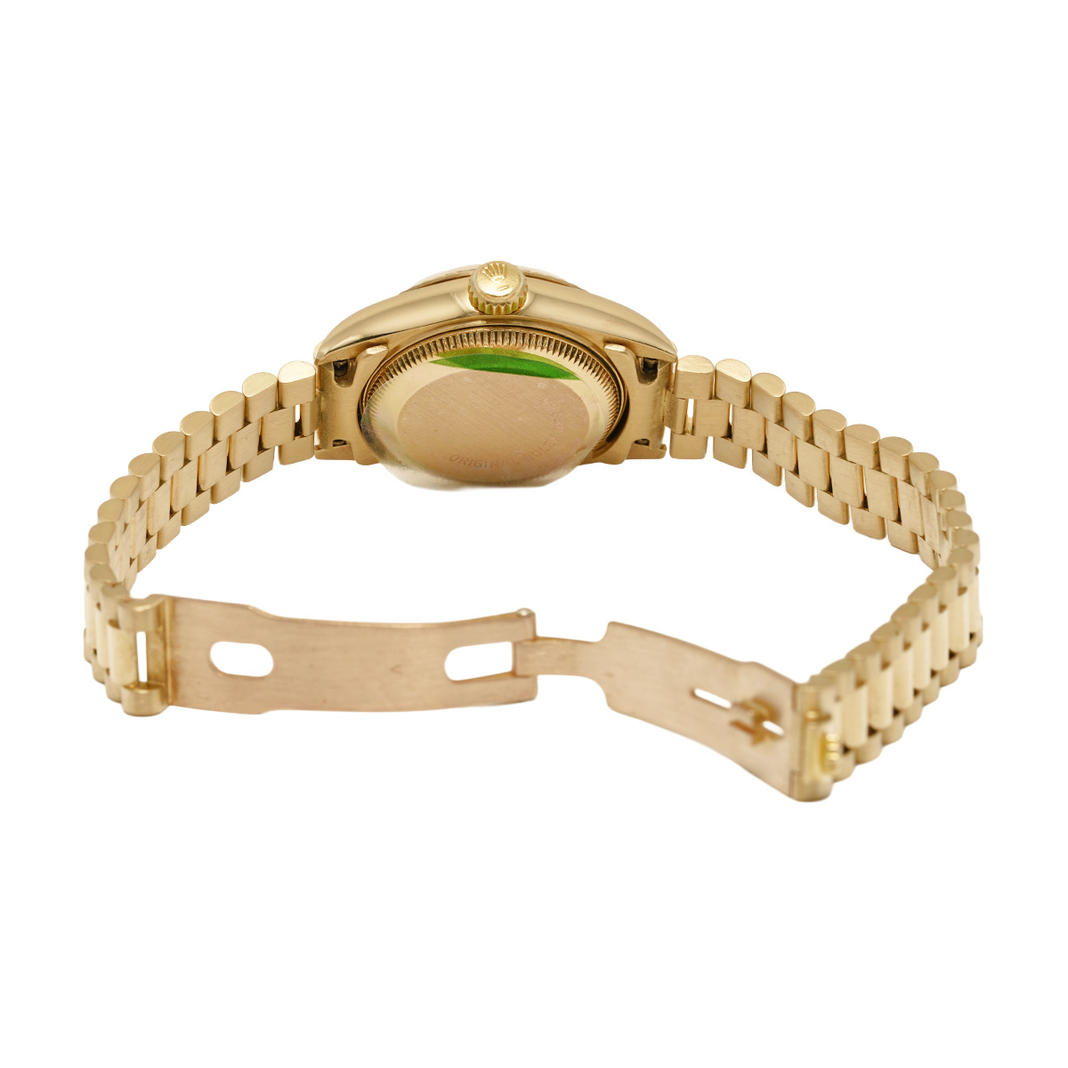 それから四半世紀の歳月を経て進化したこの世代のレディ デイトジャストの中でも、このゴールドモデルはもちろん特別な存在であり、最高峰の証であるプレジデントブレスレットがフィットされているほか、様々なジュエリーピースのベースモデルとして多く用いられています。 -