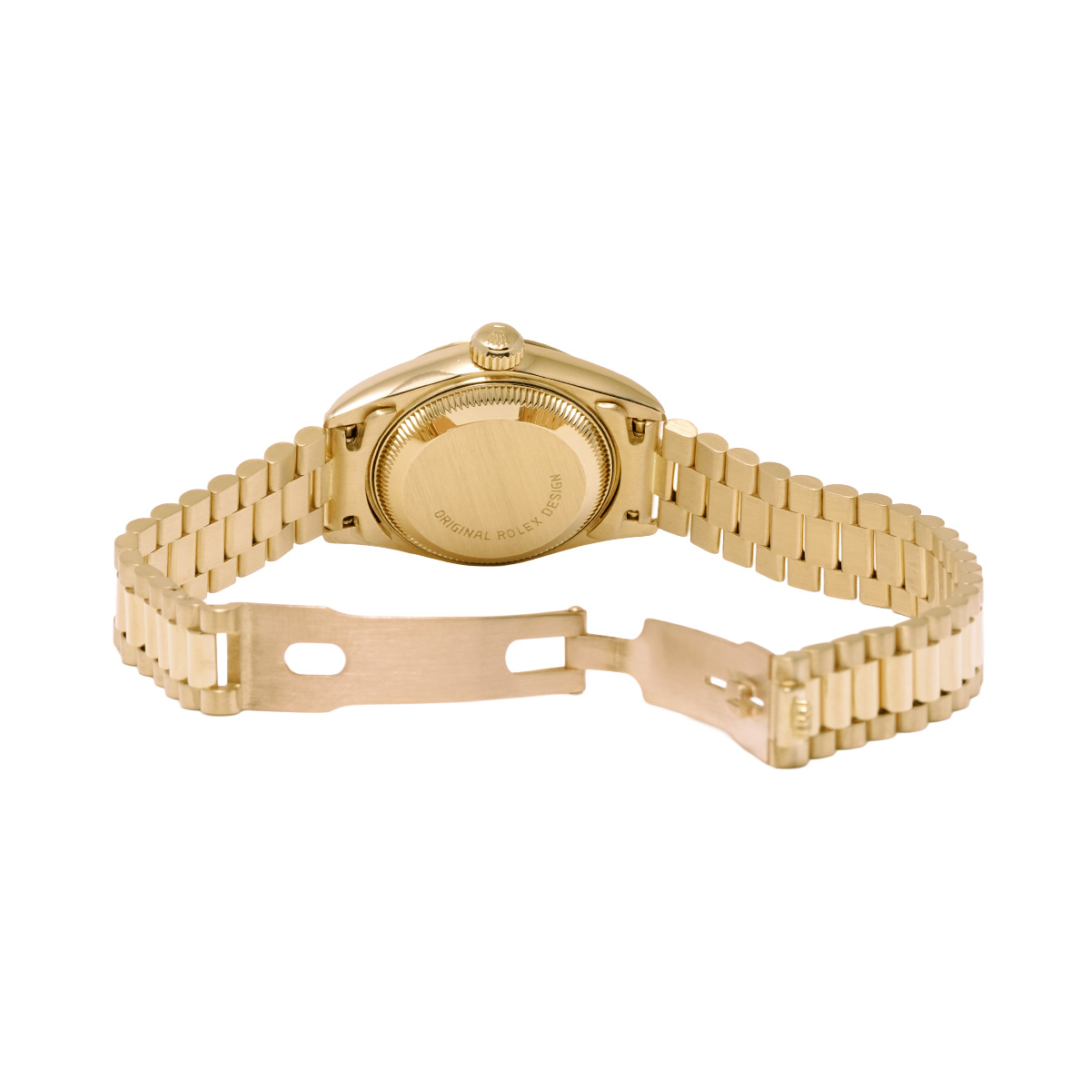それから四半世紀の歳月を経て進化したこの世代のレディ デイトジャストの中でも、このゴールドモデルはもちろん特別な存在であり、最高峰の証であるプレジデントブレスレットがフィットされているほか、様々なジュエリーピースのベースモデルとして多く用いられています。 -