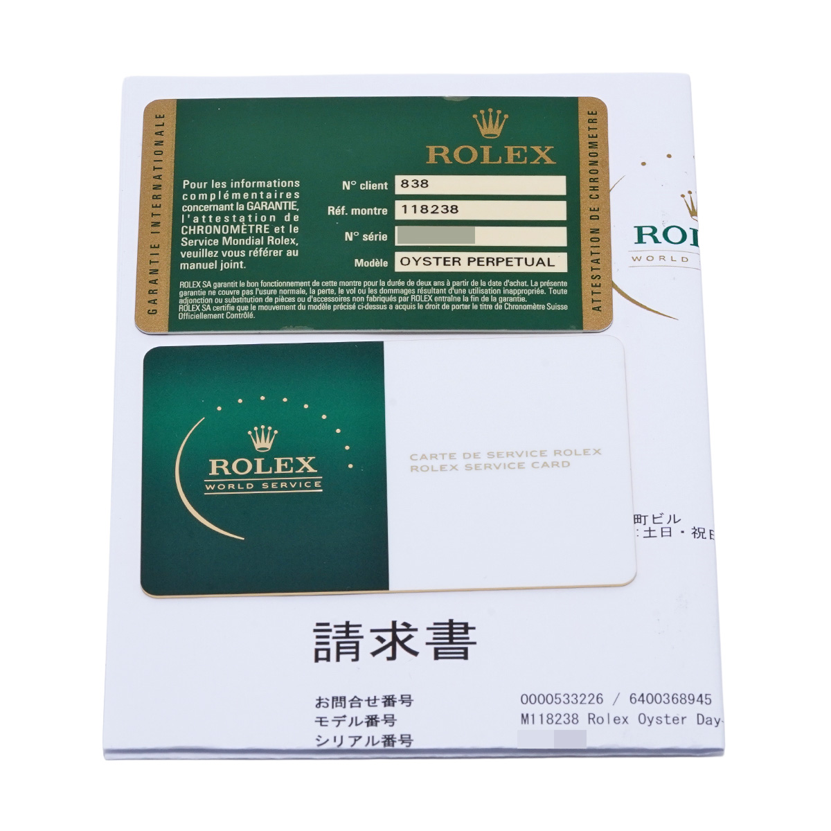 - メーカー保証書( 2012年7月海外購入) / 内箱(ダメージ)/冊子 / 請求書(2026年4月オーバーホール他) サービスカード(有効期限2028年5月)