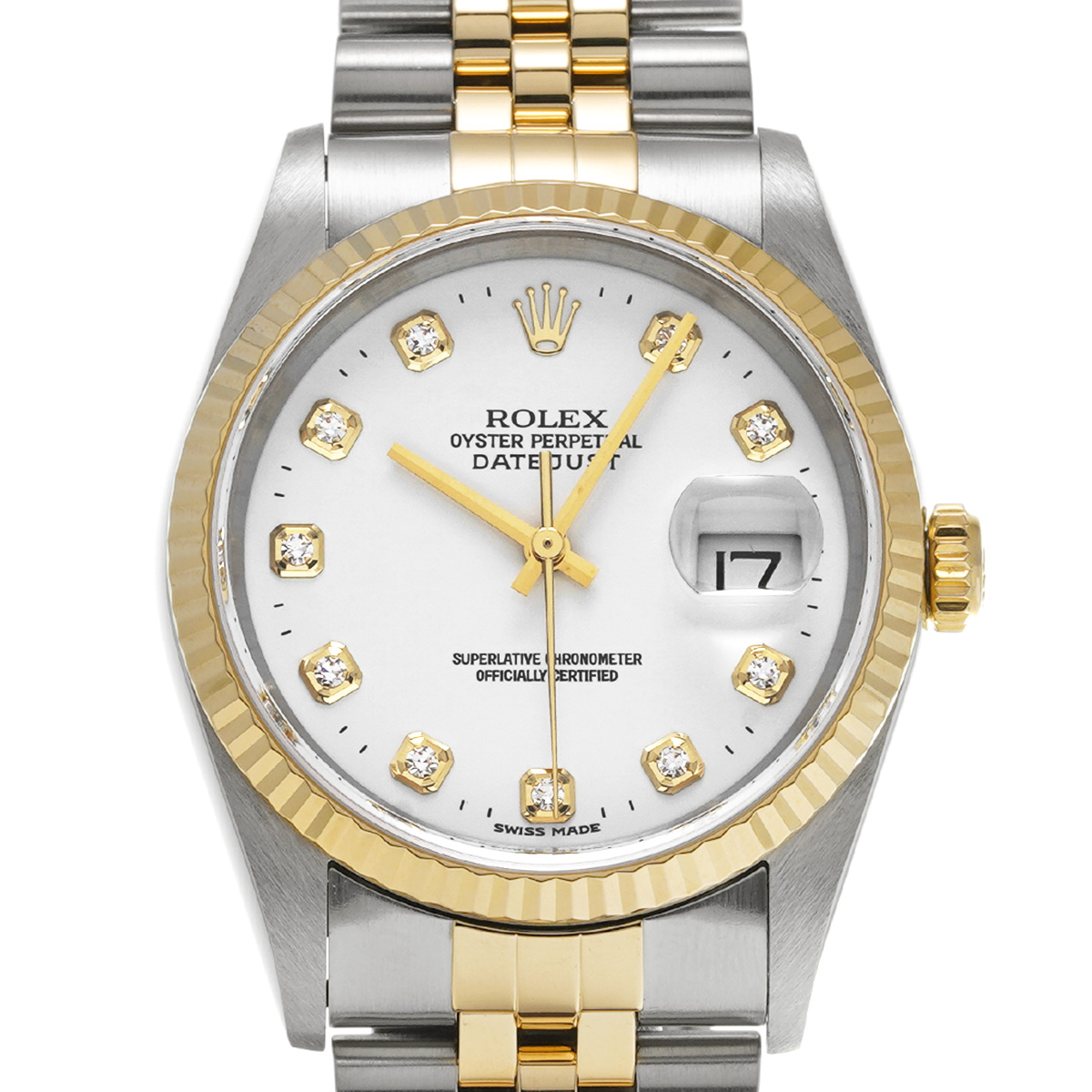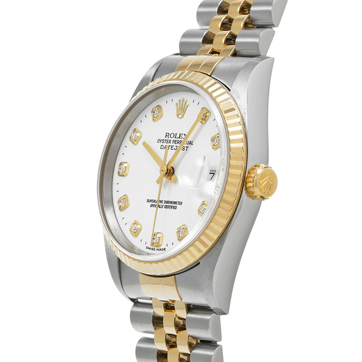 ロレックス デイトジャスト 16233G ホワイト/ダイヤモンド メンズ 時計 【中古】【wristwatch】