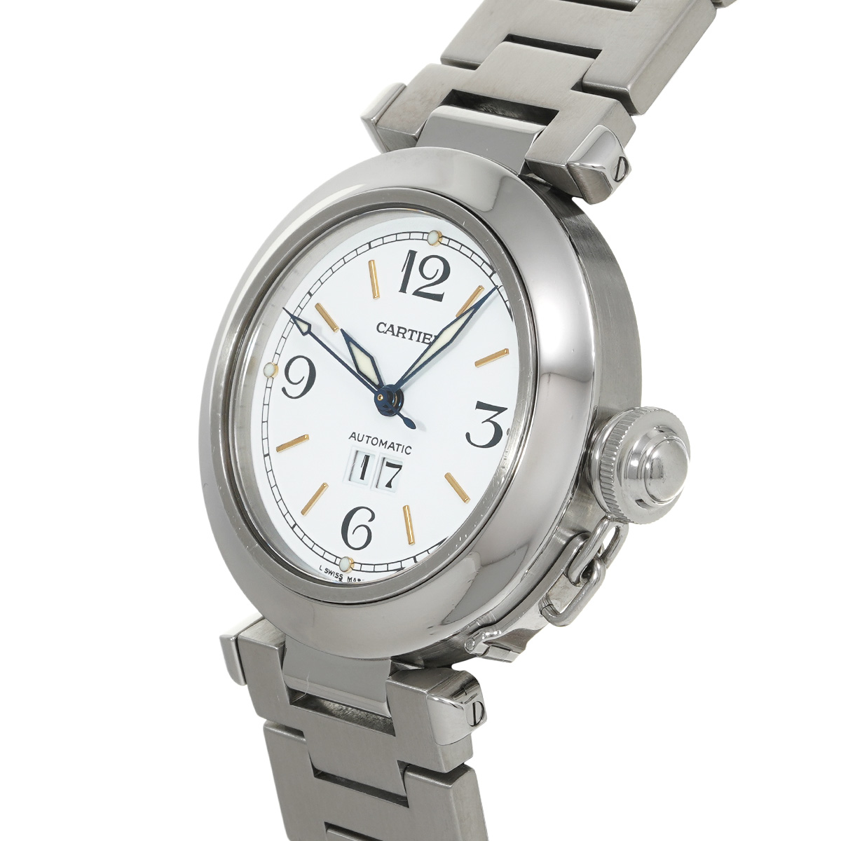 カルティエ パシャC ビッグデイト W31044M7 ホワイト ユニセックス 時計 【中古】【wristwatch】