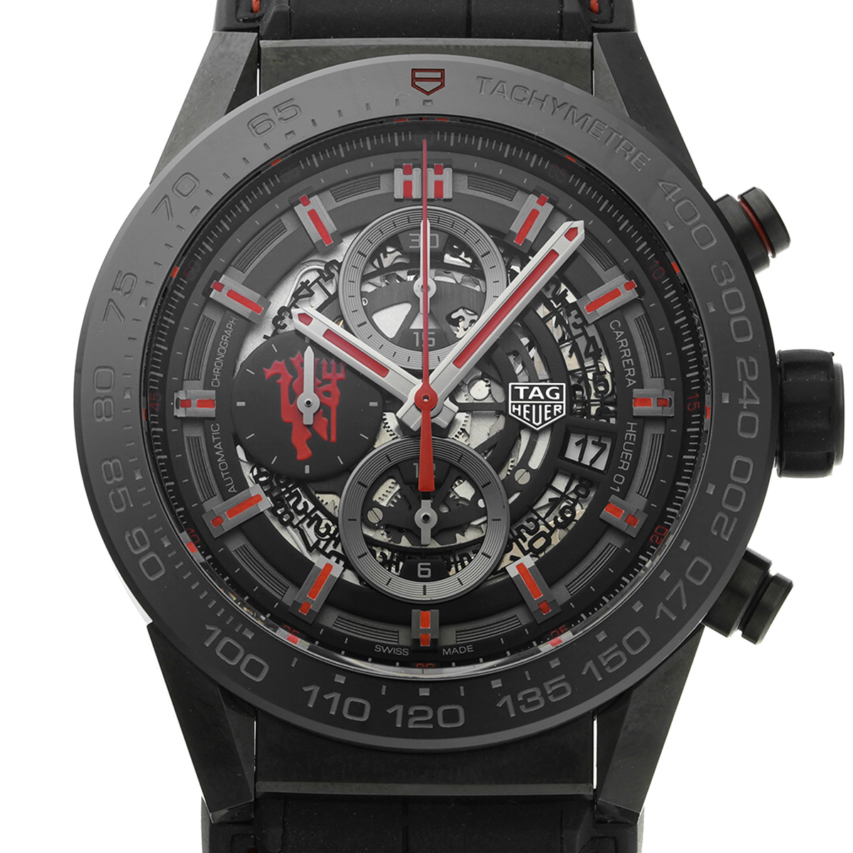 タグ ホイヤー カレラ キャリバー ホイヤー01 クロノグラフ マンチェスター・ユナイテッド CAR2A1J.FC6400 ブラック メンズ 時計 【中古】【wristwatch】