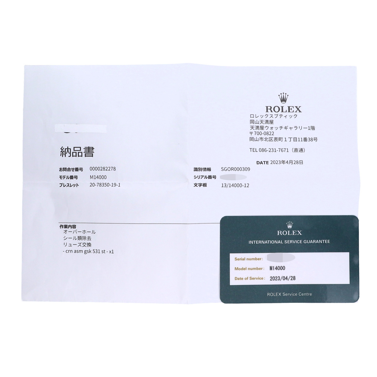 - 納品書(2023年4月オーバーホール他)国際サービス保証書(2023年4月オーバーホール)