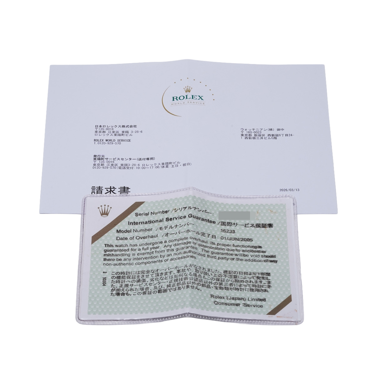 - 国際サービス保証書(2005年6月オーバーホール)請求書(2026年3月)