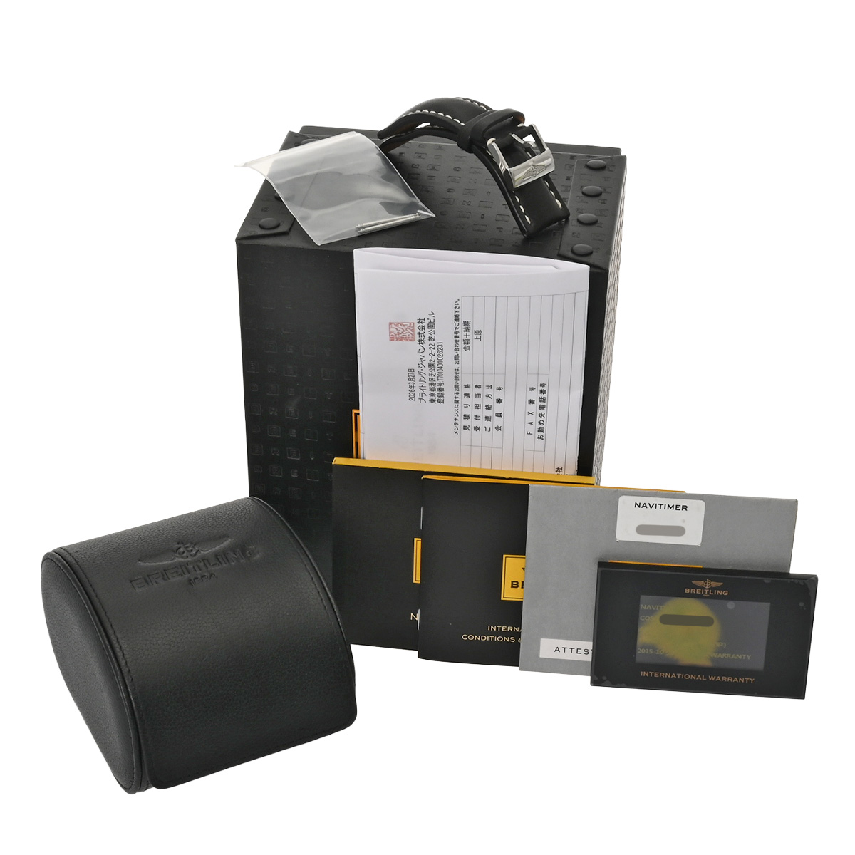 - メーカー保証書( 2015年10月購入(液晶劣化あり)) / 替えベルト( レザー/ブラック(使用感あり)) / メーカー箱/冊子/クロノメーター証明書 / 請求書