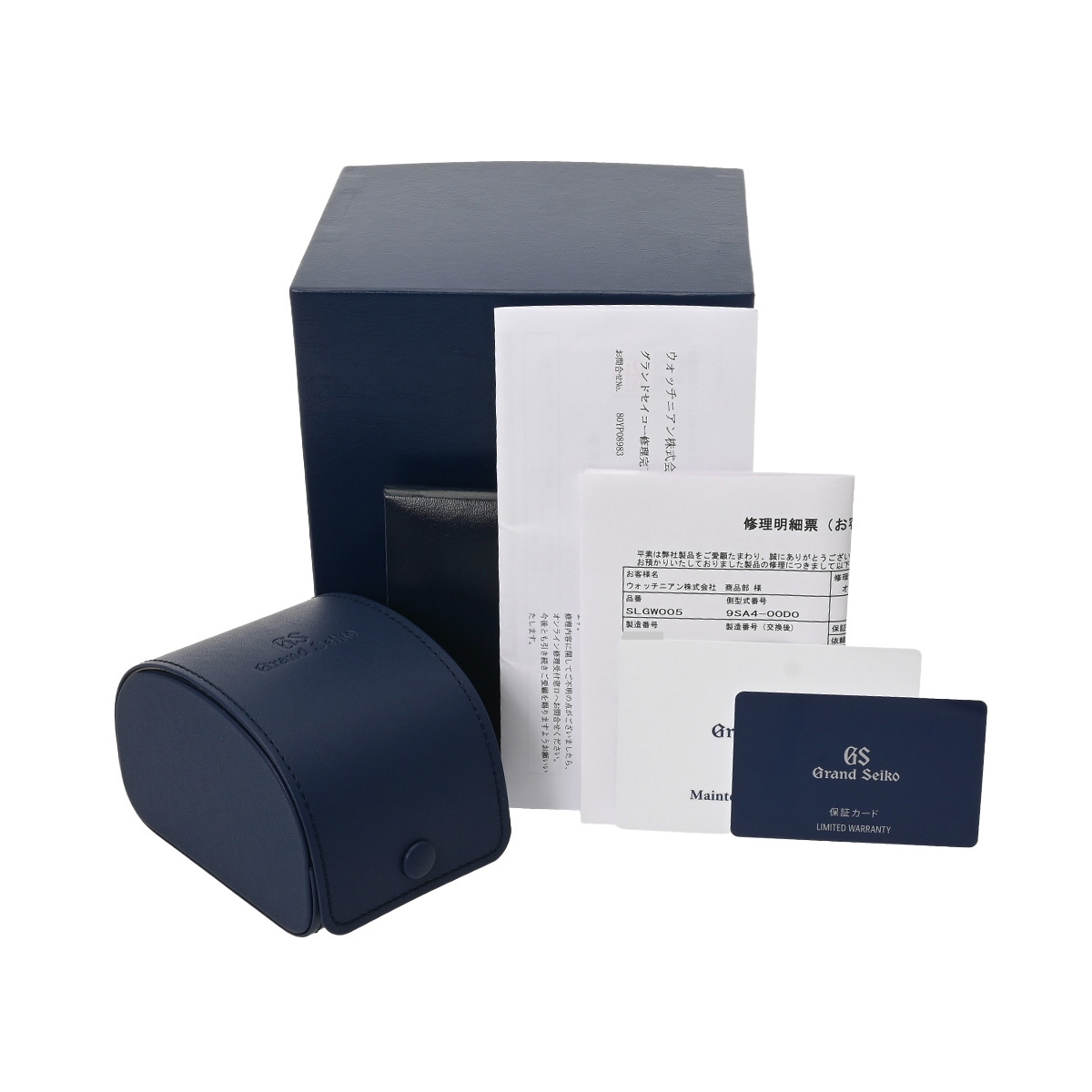 - メーカー保証書( 2024年11月国内購入) / メーカー箱 / メンテナンスサポートカード、修理明細票、修理完了報告書(ストラップ交換、他)