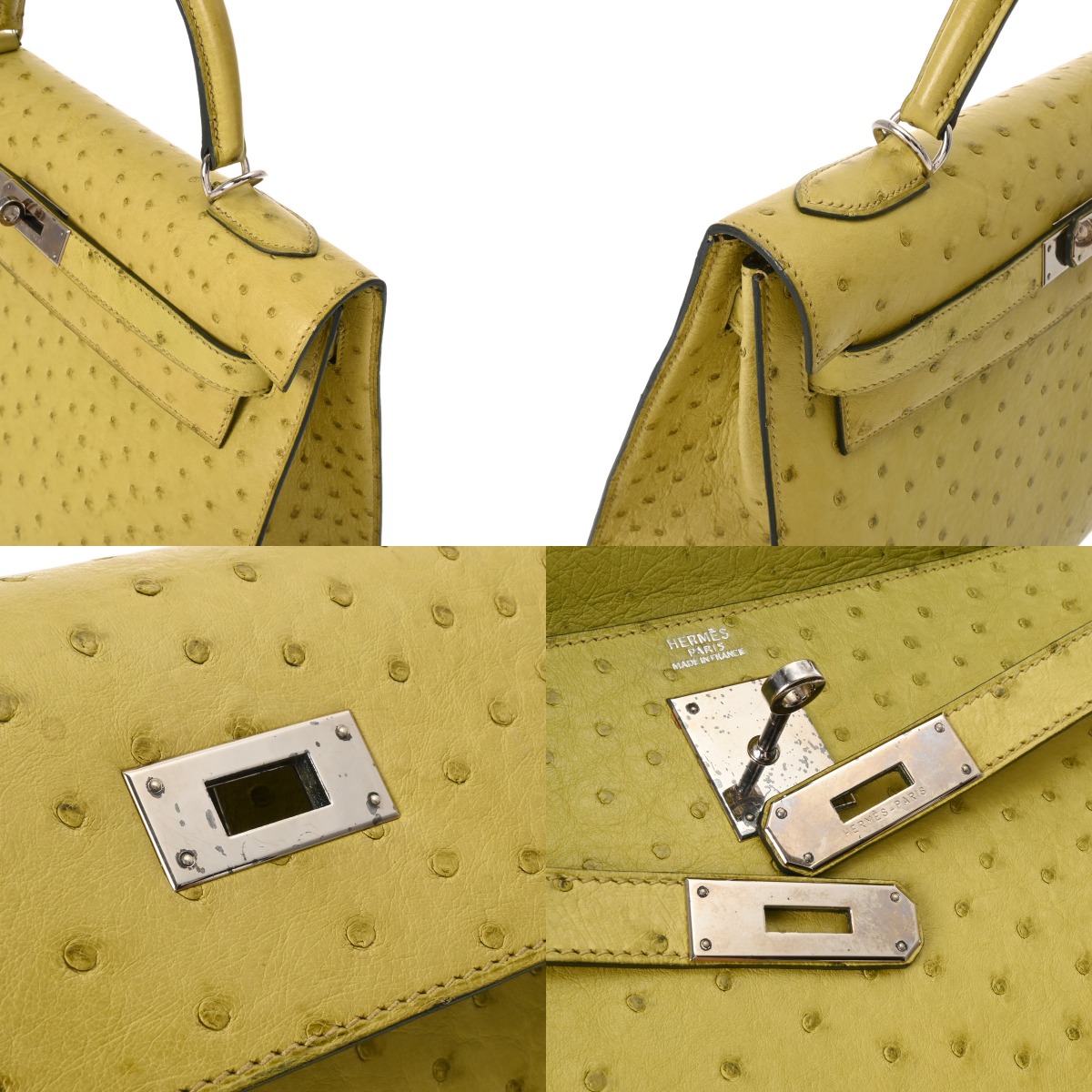 エルメス ケリー 32 外縫い アニスグリーン オーストリッチ レディース バッグ 【中古】【bag】