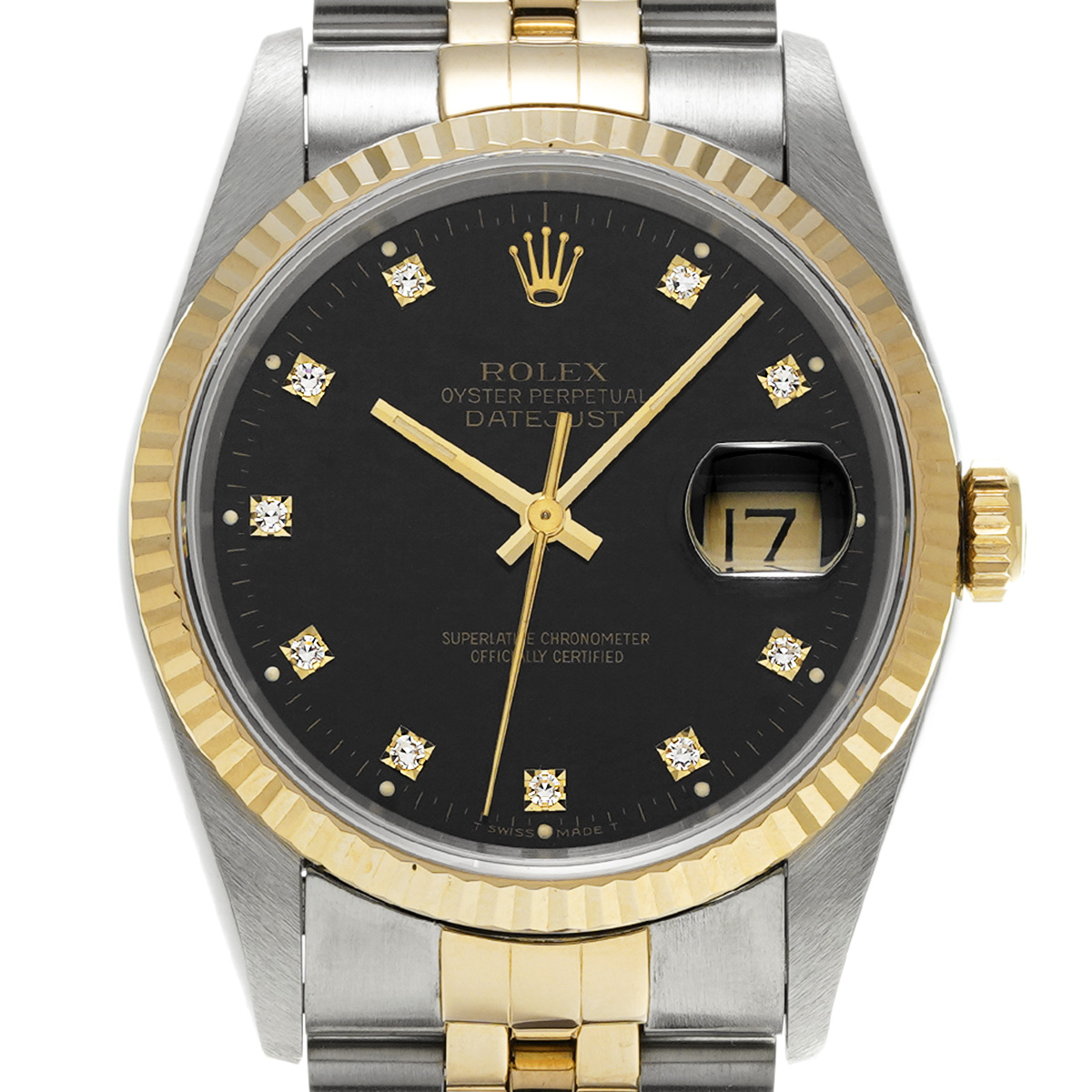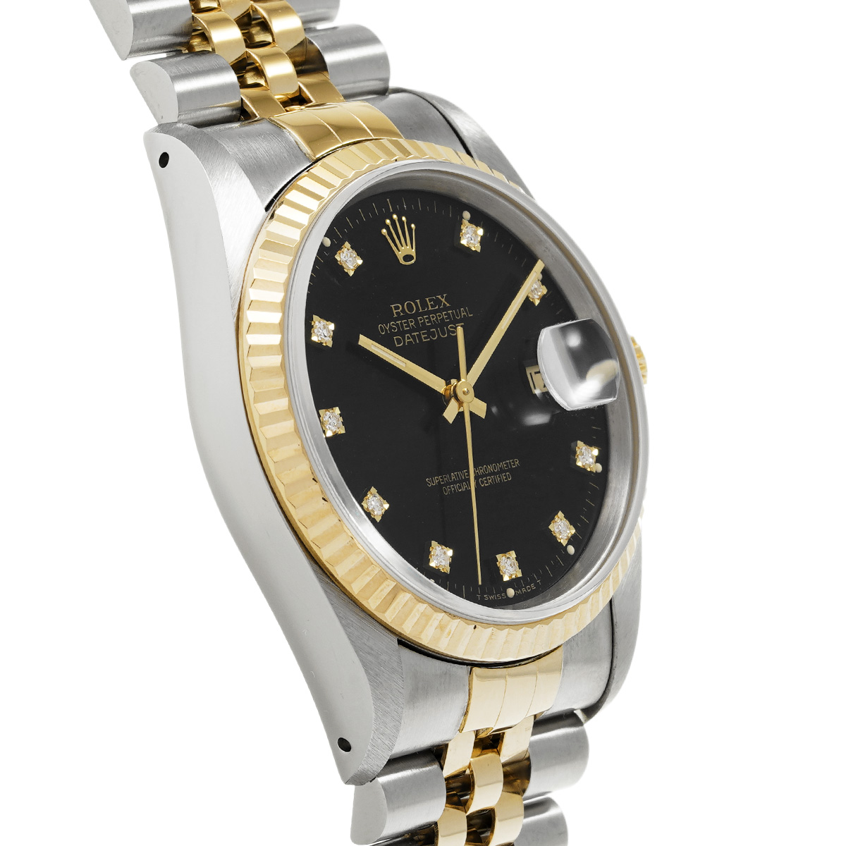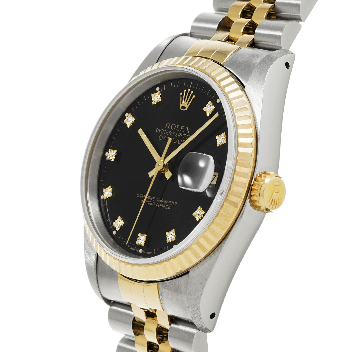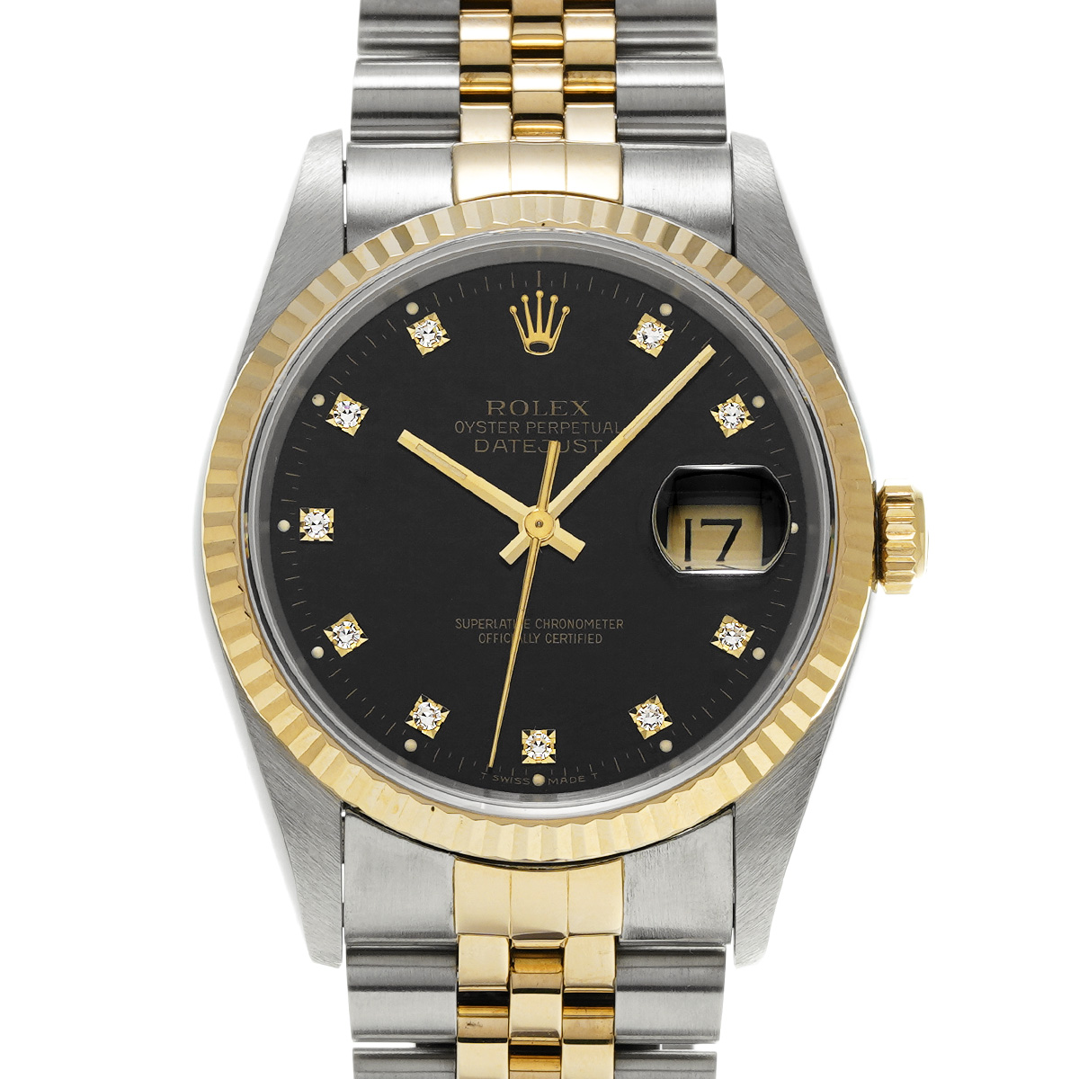 ロレックス デイトジャスト 16233G ブラック/ダイヤモンド メンズ 時計 【中古】【wristwatch】