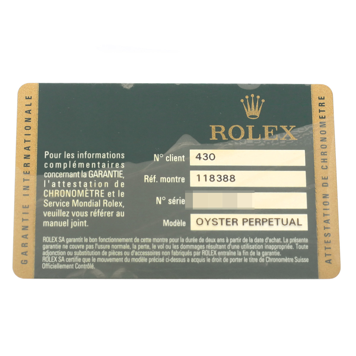 メーカーの保証カードの両面に大きな剥がれがあります。