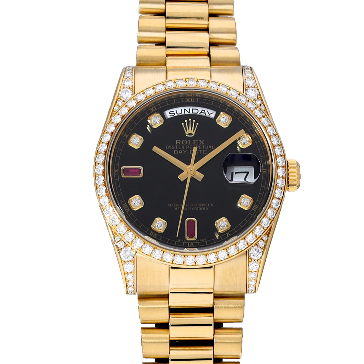 ロレックス デイデイト 118388 ブラック/ダイヤモンド/ルビー メンズ 時計 【中古】【wristwatch】