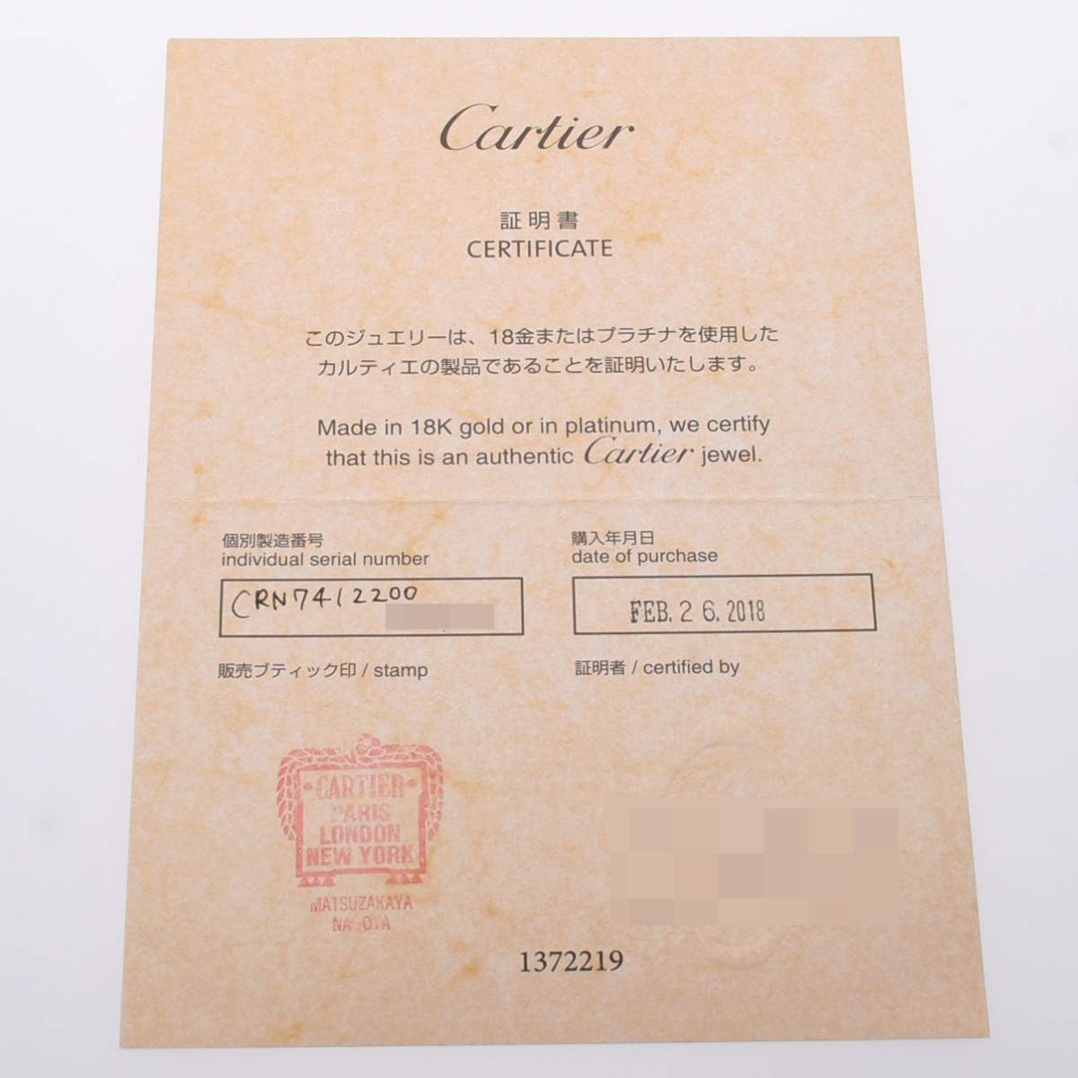 - メーカー保証書( 2018年2月国内購入) / メーカー箱 / GIA鑑定書