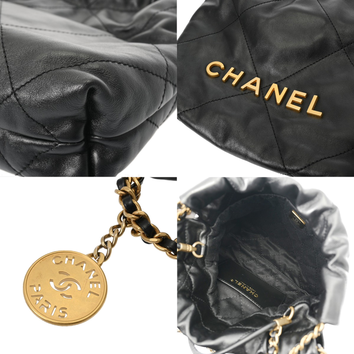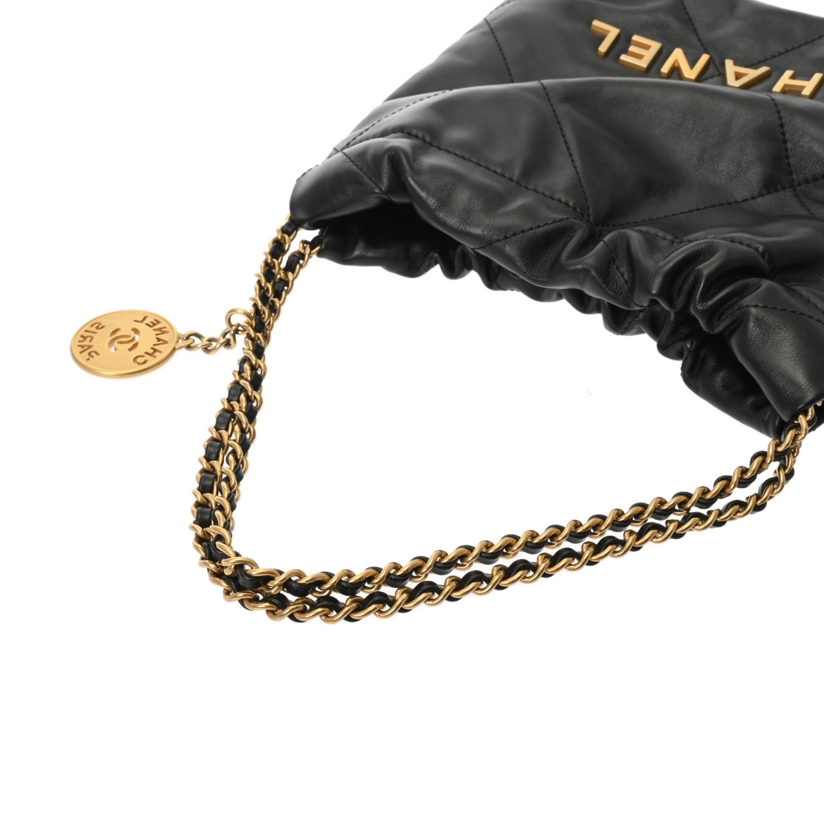 シャネル ミニ ハンドバッグ CHANEL22 ブラック AS3980 シャイニーカーフスキン レディース バッグ 【中古】【bag】