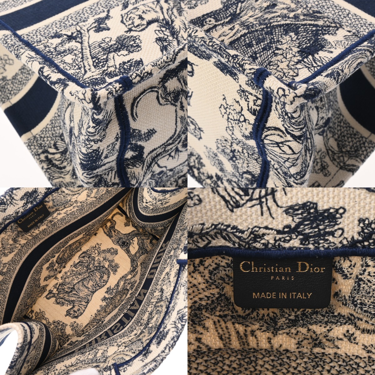 ディオール Book Toteバッグ ミディアム トワルドゥジュイ エクリュホワイト/ブルー M1296ZTDT_M341 エンブロイダリーキャンバス レディース バッグ 【中古】【bag】