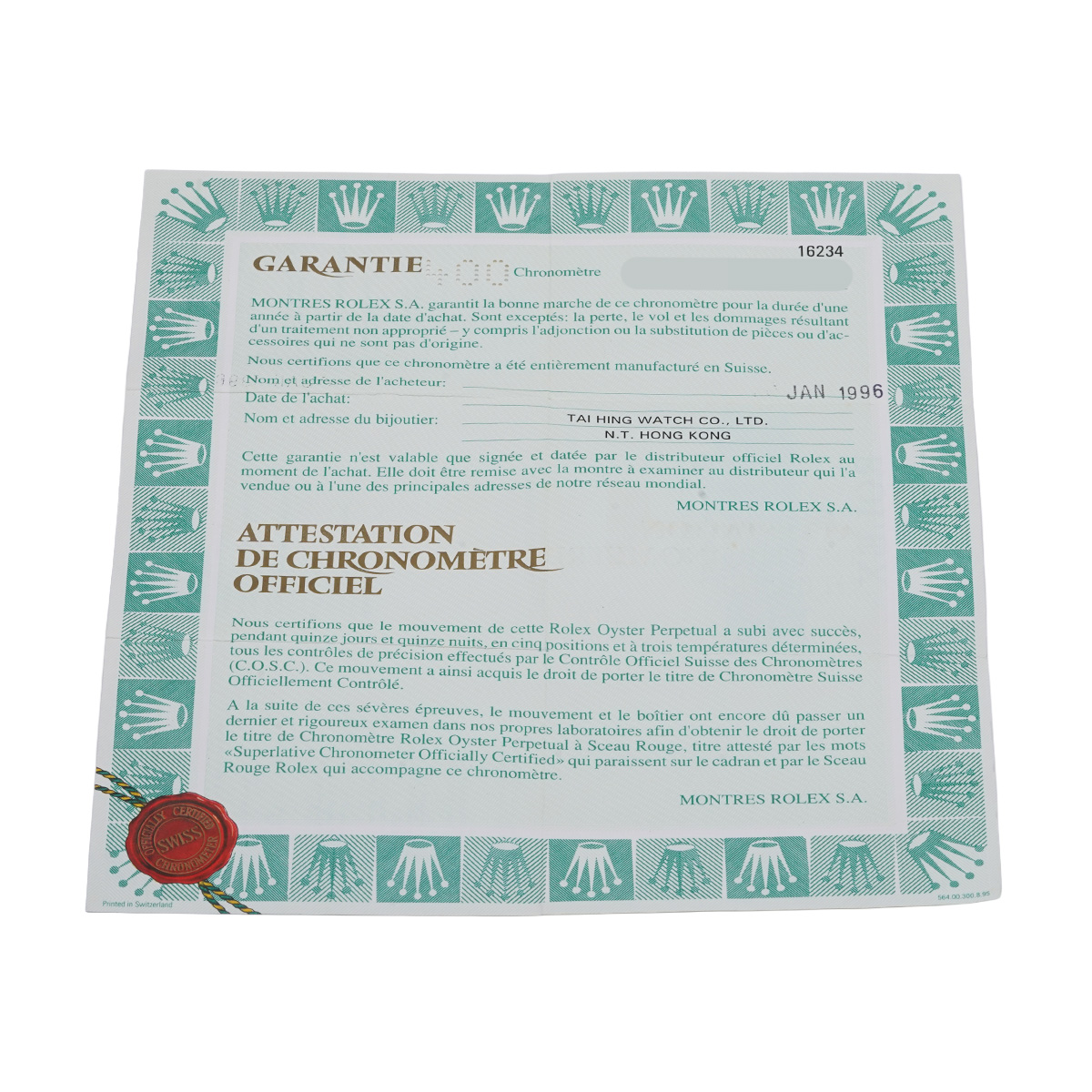 - メーカー保証書( 1996年1月国内購入)