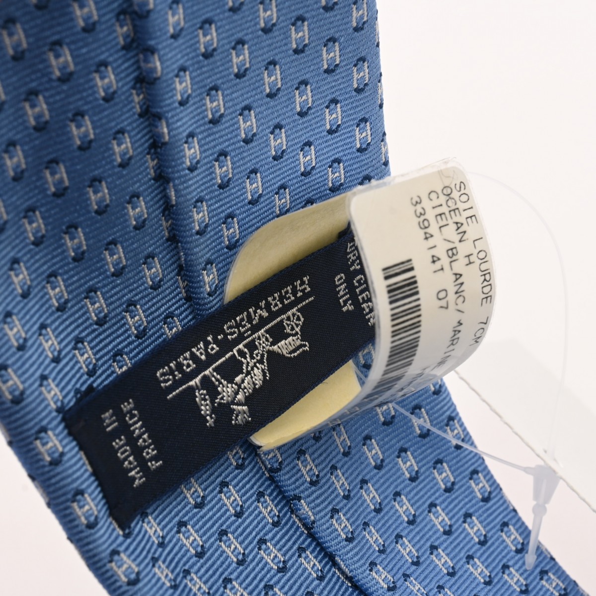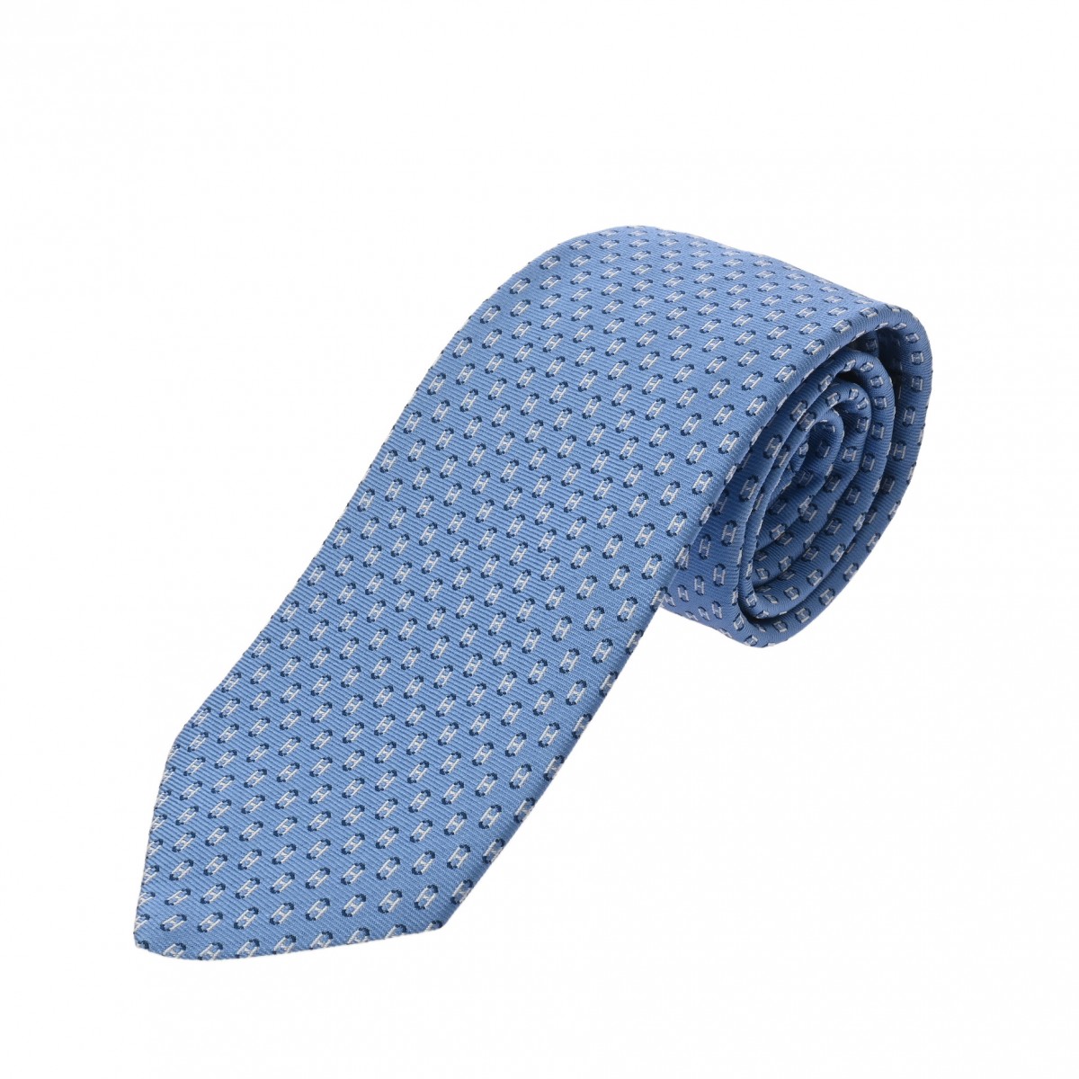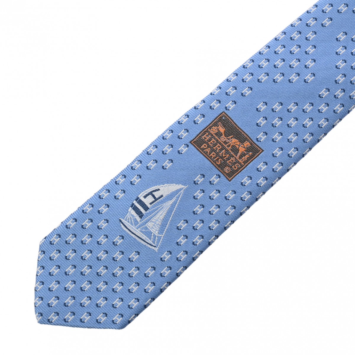 エルメス シルクタイ 7cm オセアンH シエル/ホワイト/マリン シルク100% メンズ 【未使用】【other】