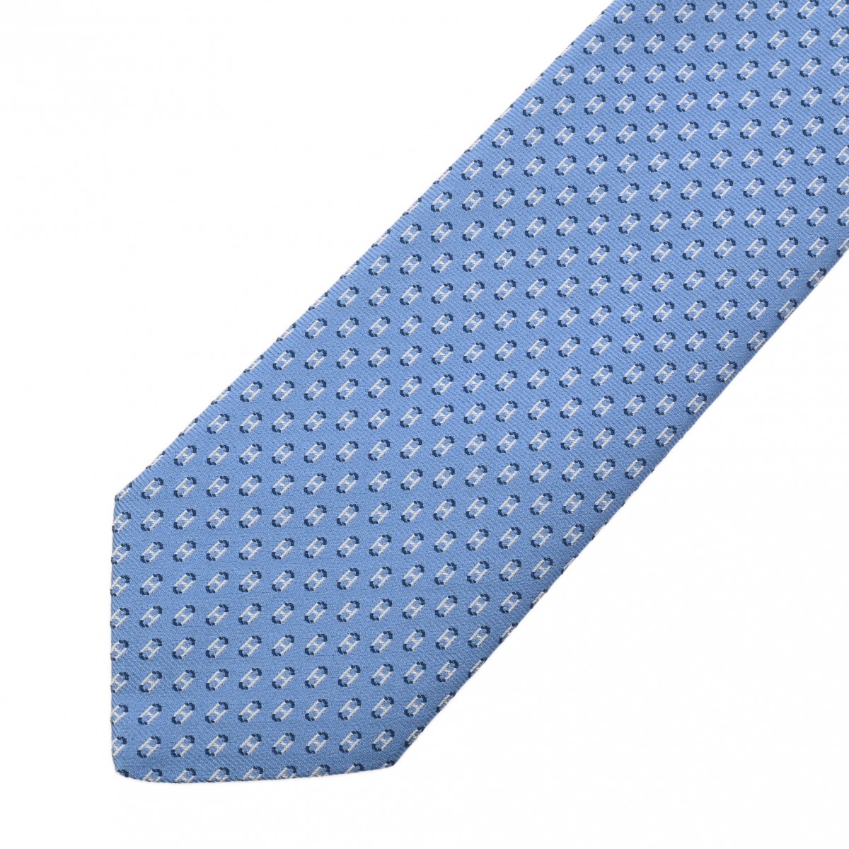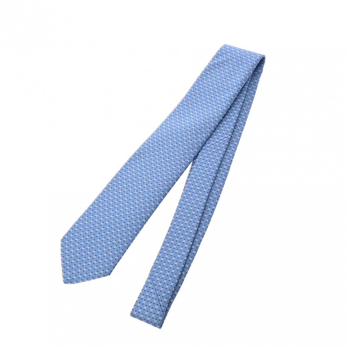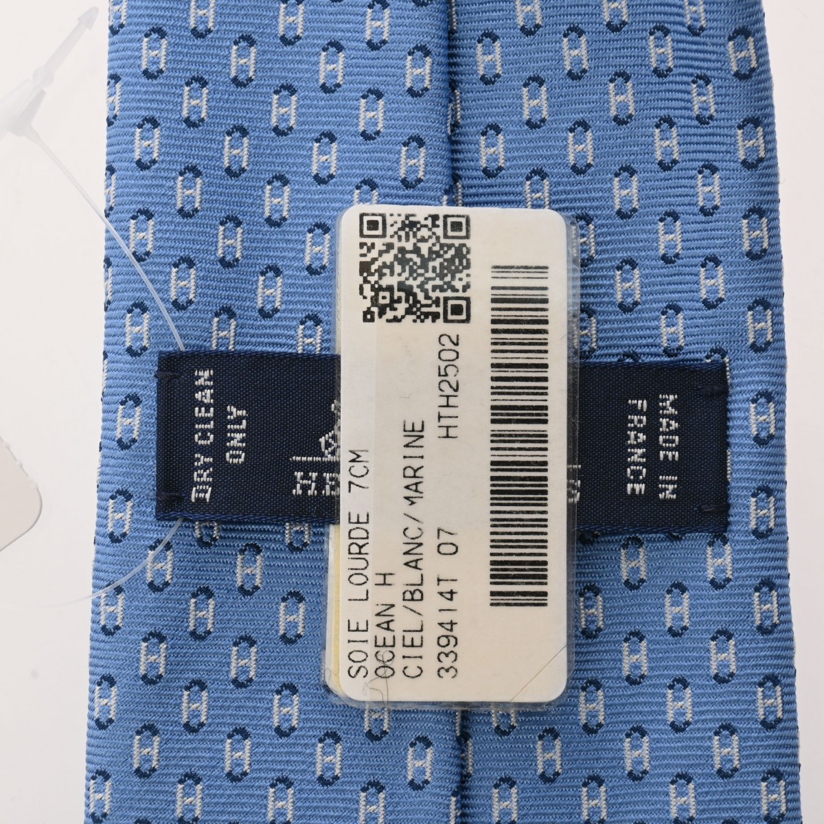 エルメス シルクタイ 7cm オセアンH シエル/ホワイト/マリン シルク100% メンズ 【未使用】【other】