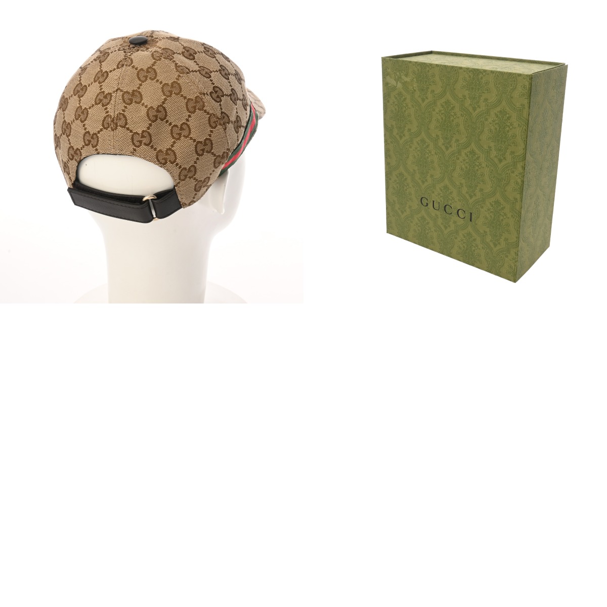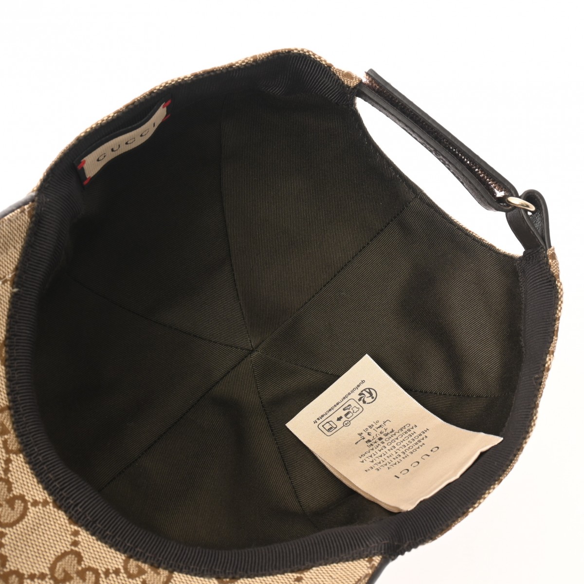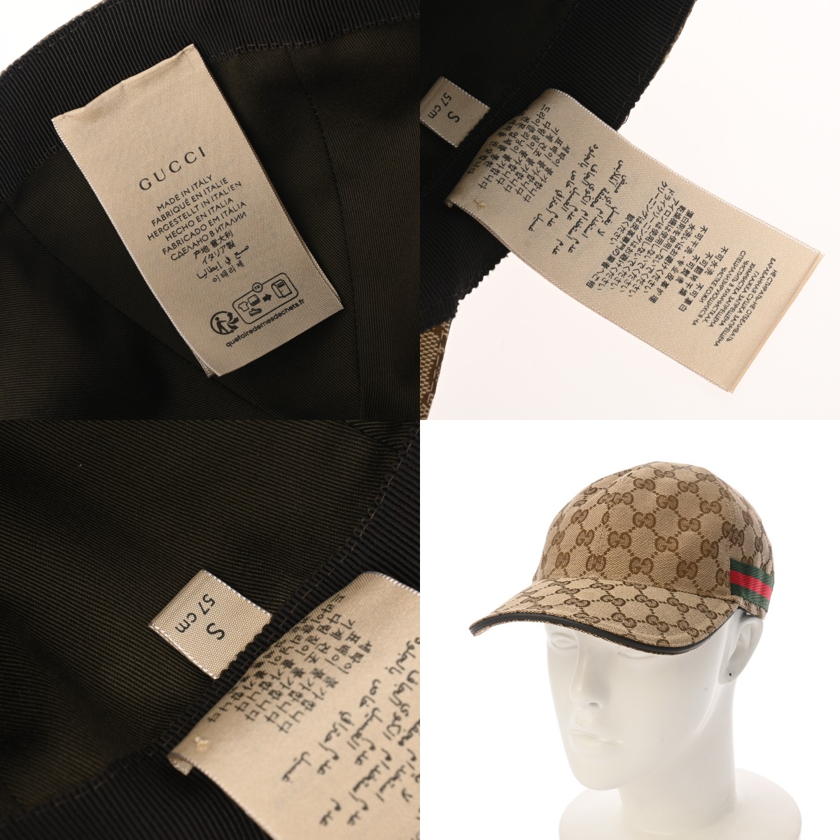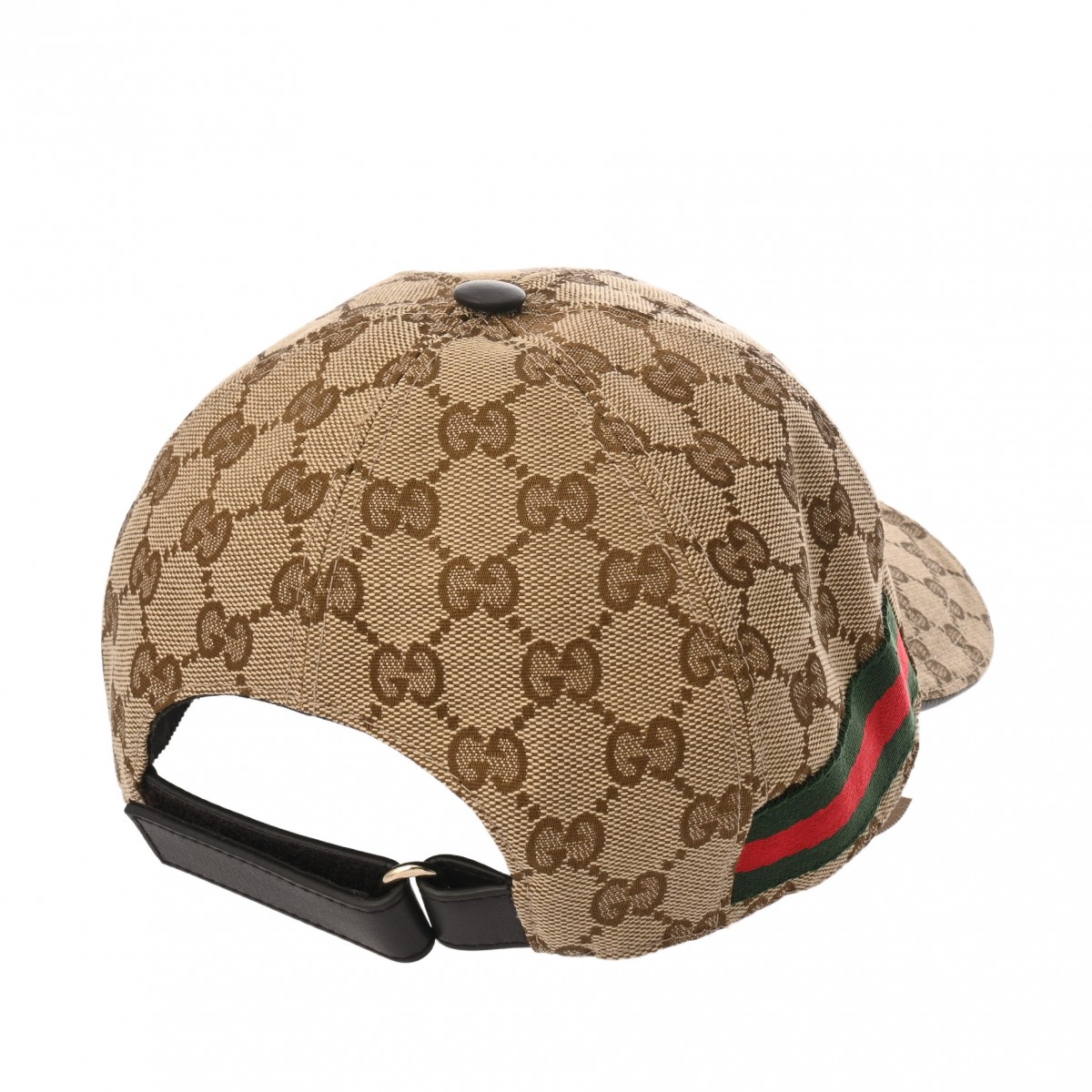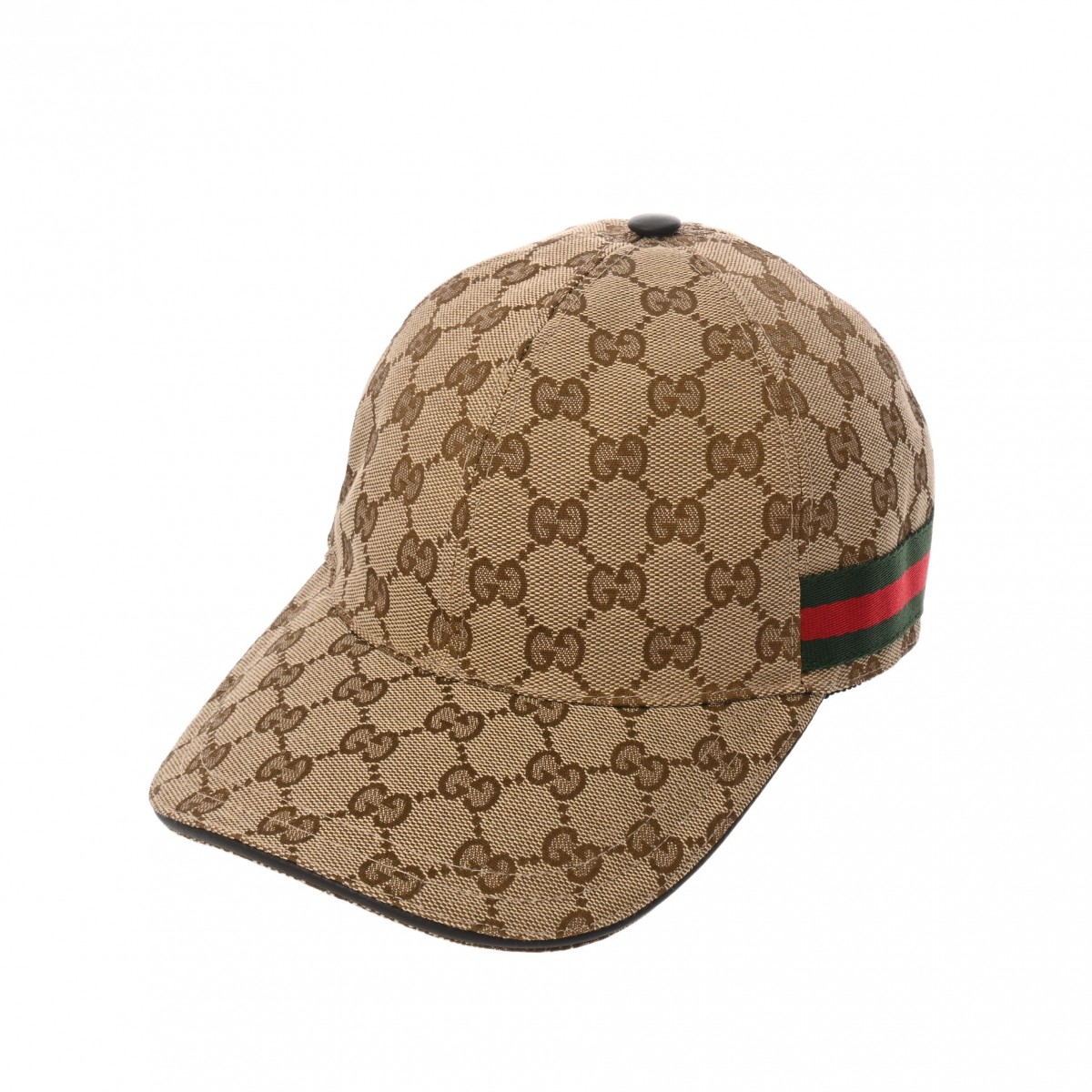 グッチ ベースボールキャップ #S ベージュ/エボニー/ブラウン 200035 202291 レザー/オリジナルGGキャンバス ユニセックス 帽子 【中古】【other】