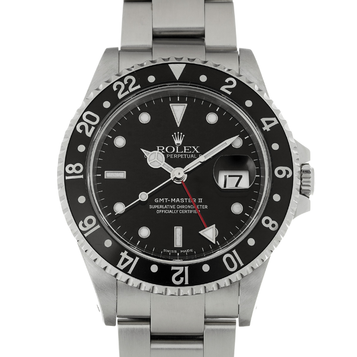 コメント従来の回転ベゼルと24時間針の組み合わせによる2タイムゾーンの表示に加えて、単独修正可能な短針を組み合わせることで同時に3つのタイムゾーンの時刻が表示可能となったGMTマスター II 。