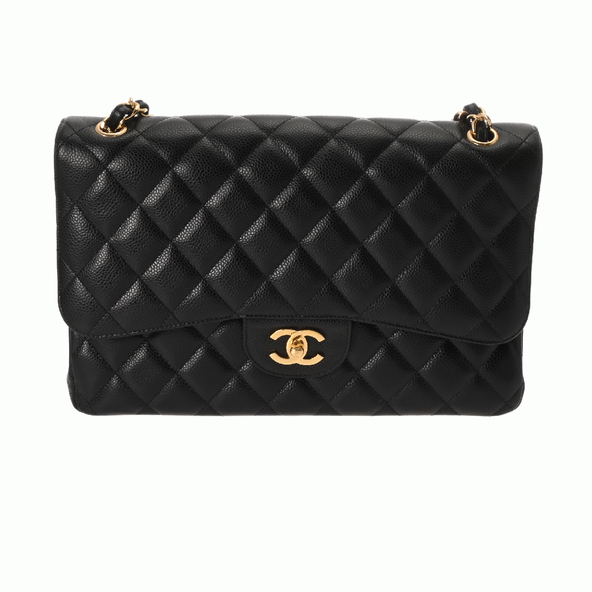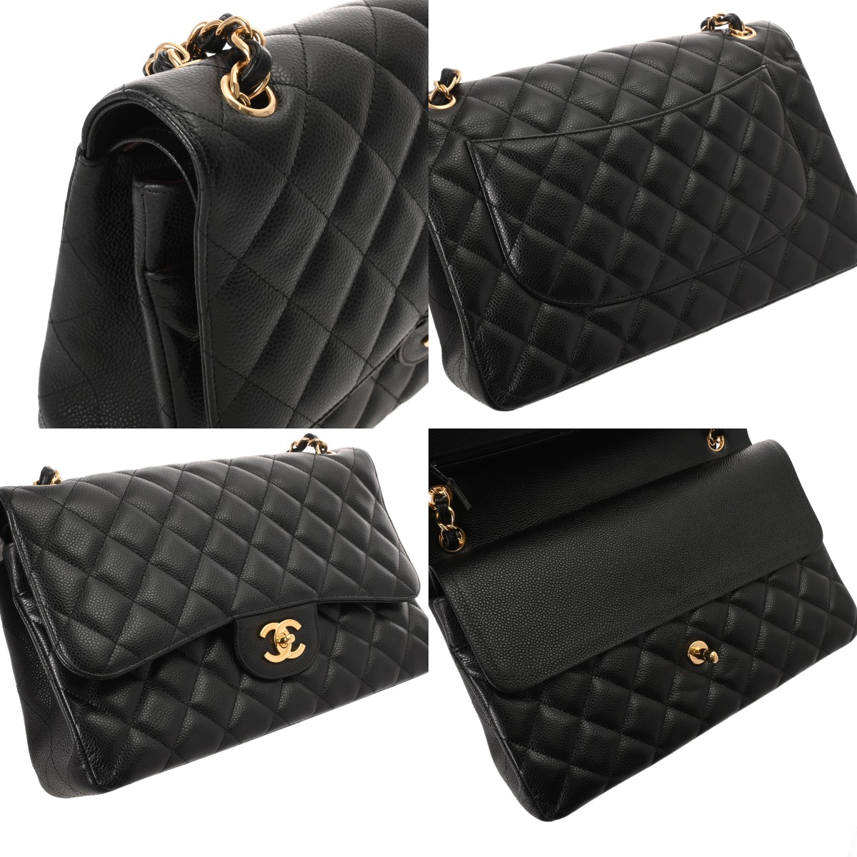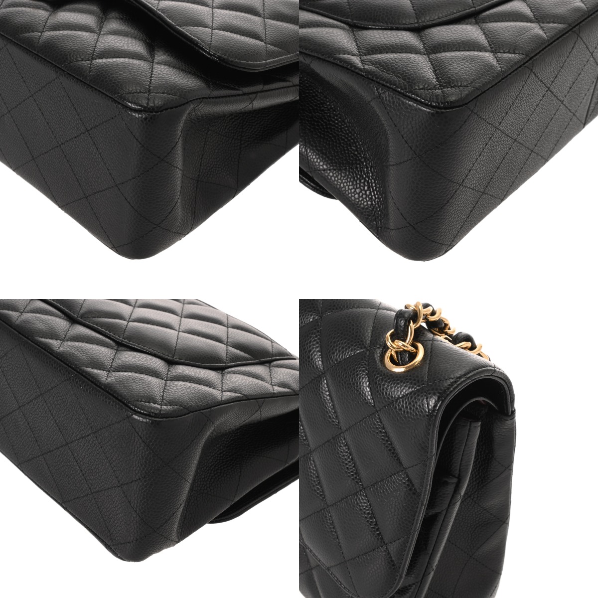 シャネル マトラッセ WフラップWチェーンショルダー 30 ブラック A58600 キャビアスキン レディース バッグ 【中古】【bag】