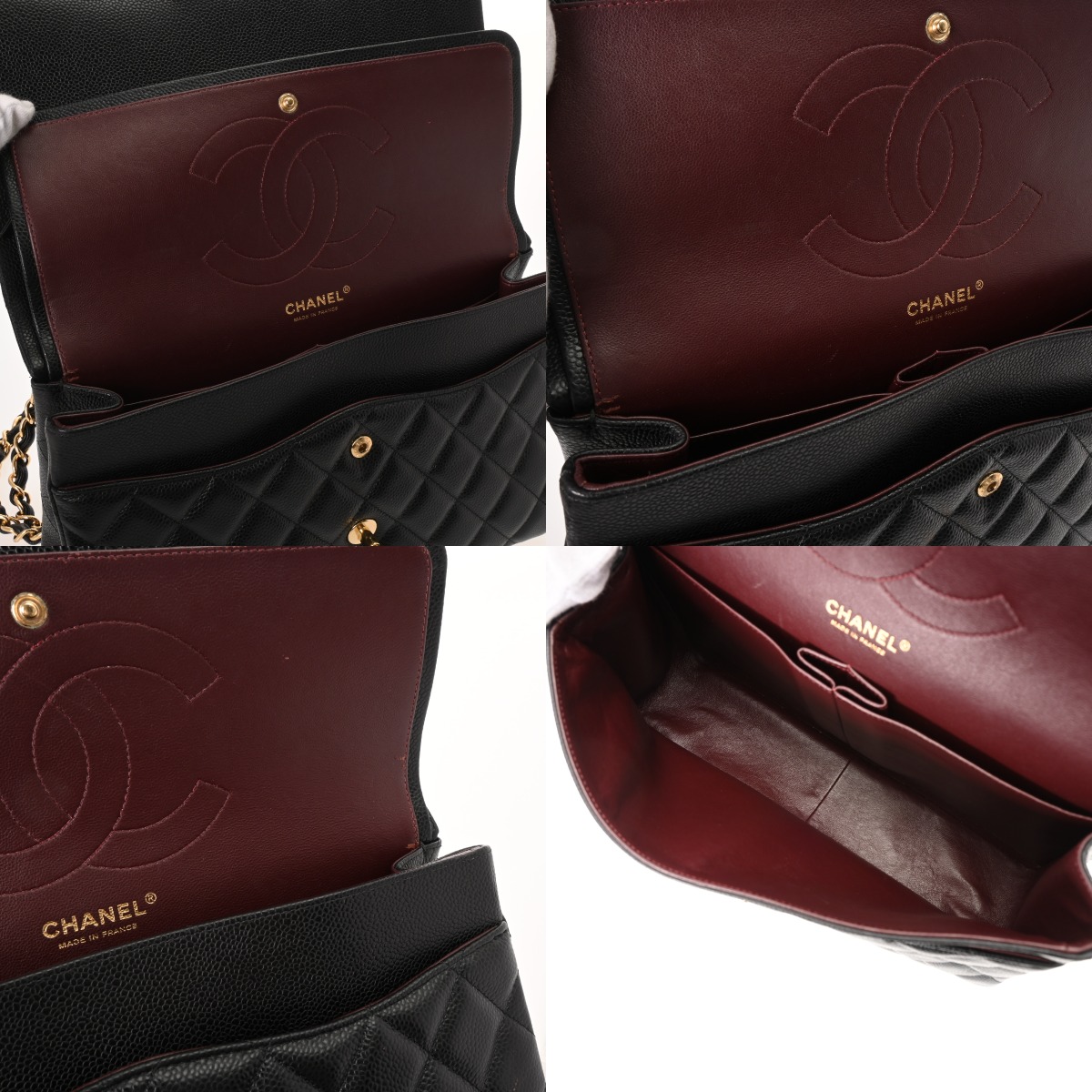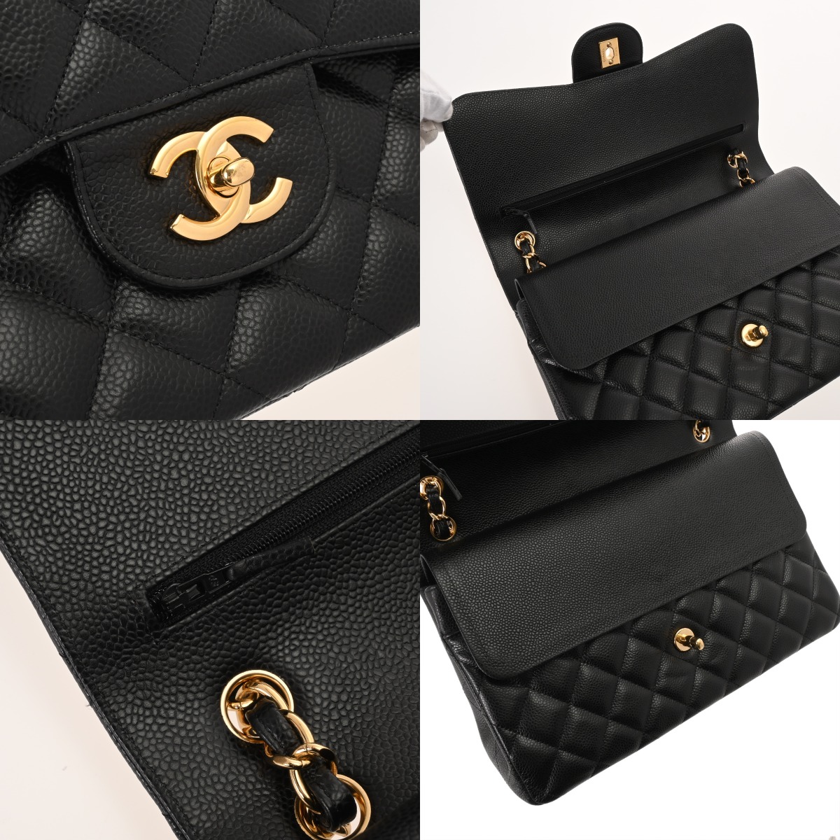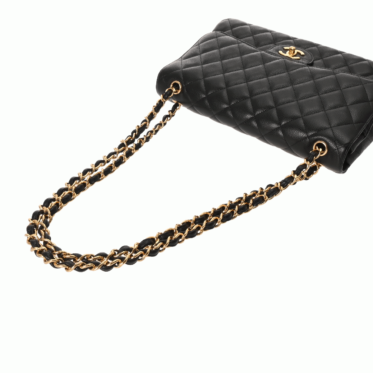 シャネル マトラッセ WフラップWチェーンショルダー 30 ブラック A58600 キャビアスキン レディース バッグ 【中古】【bag】