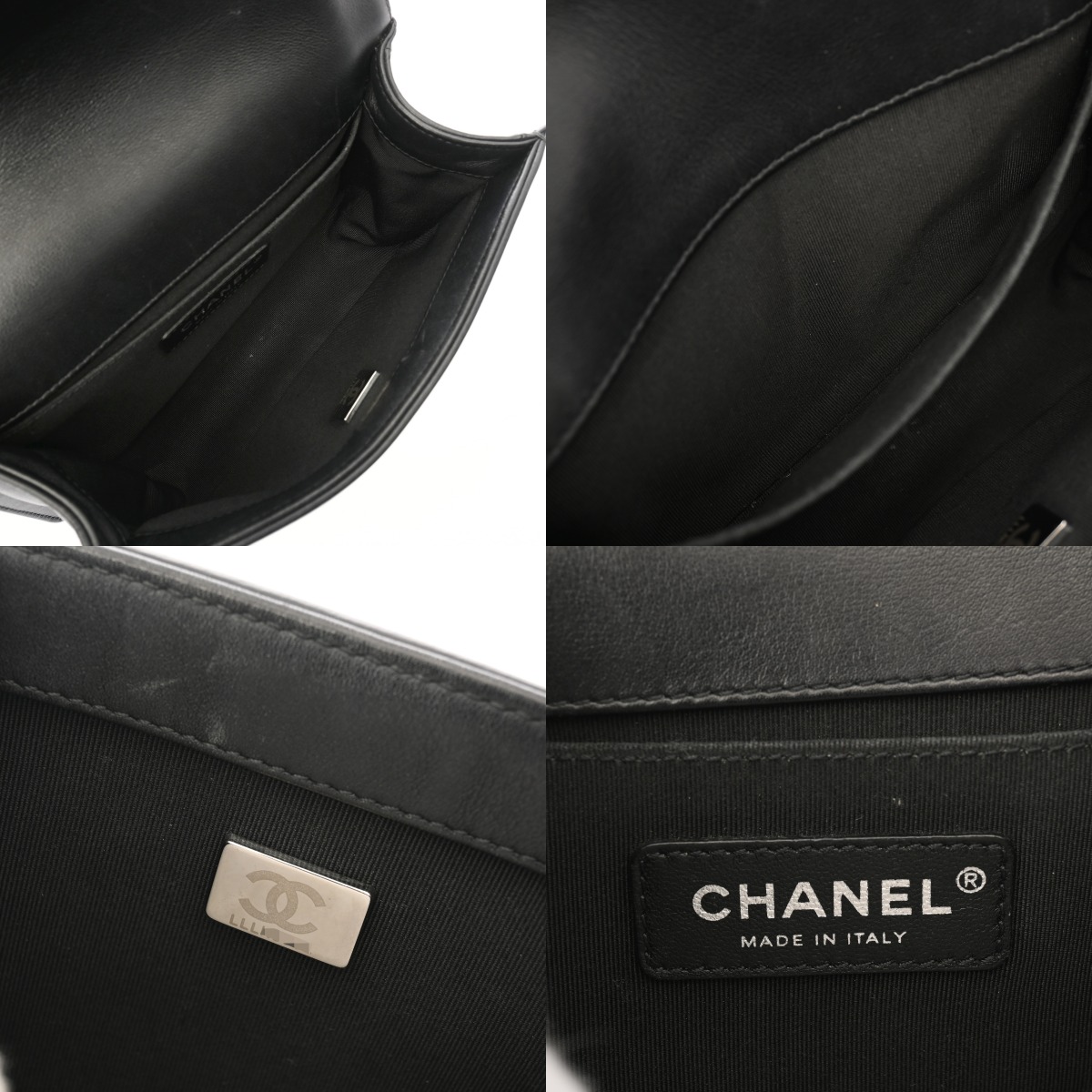 - フラップ裏に押し跡、シワ、薄汚れ、金具にスレ、ポケットに広がりが若干ございます。