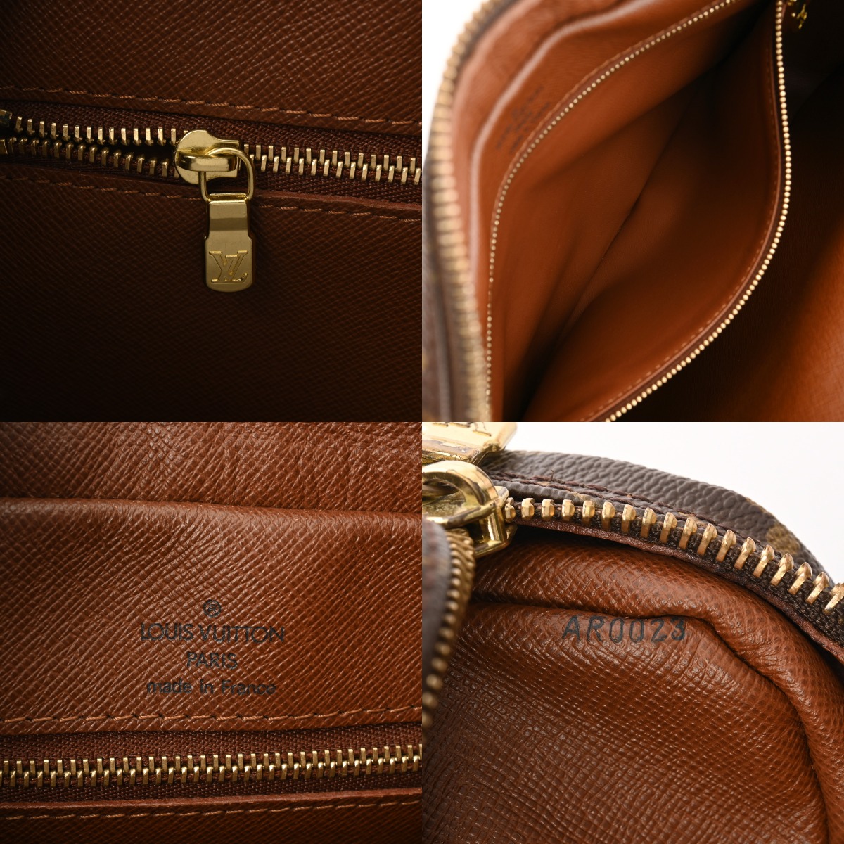 - 外ポケット内も含め少々ヨレ、若干汚れがあり、金具部分に色ハゲなど若干使用感がございます。