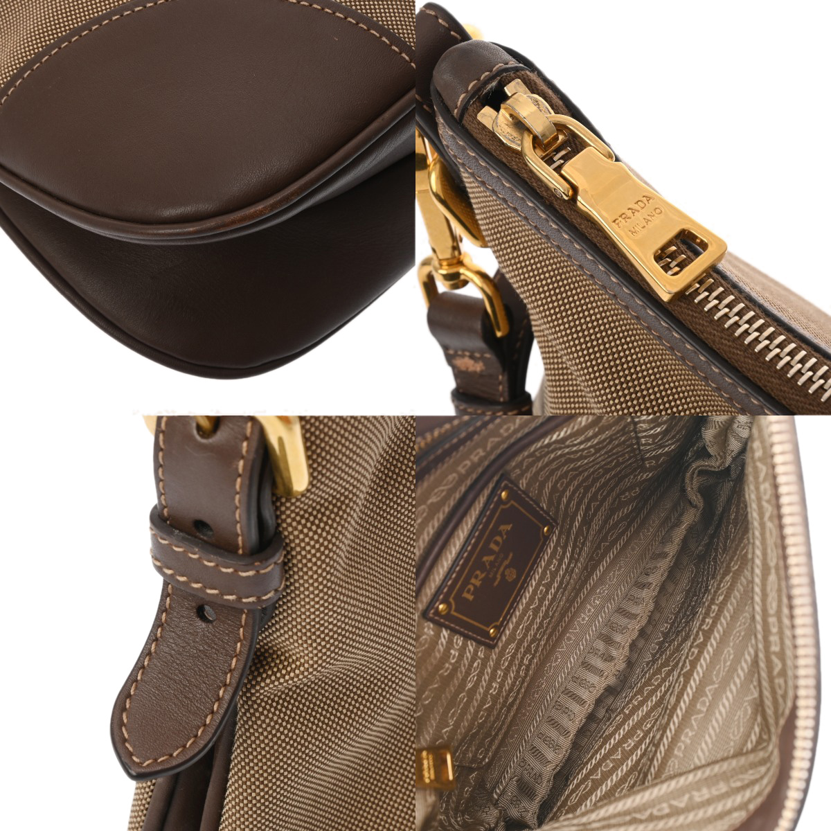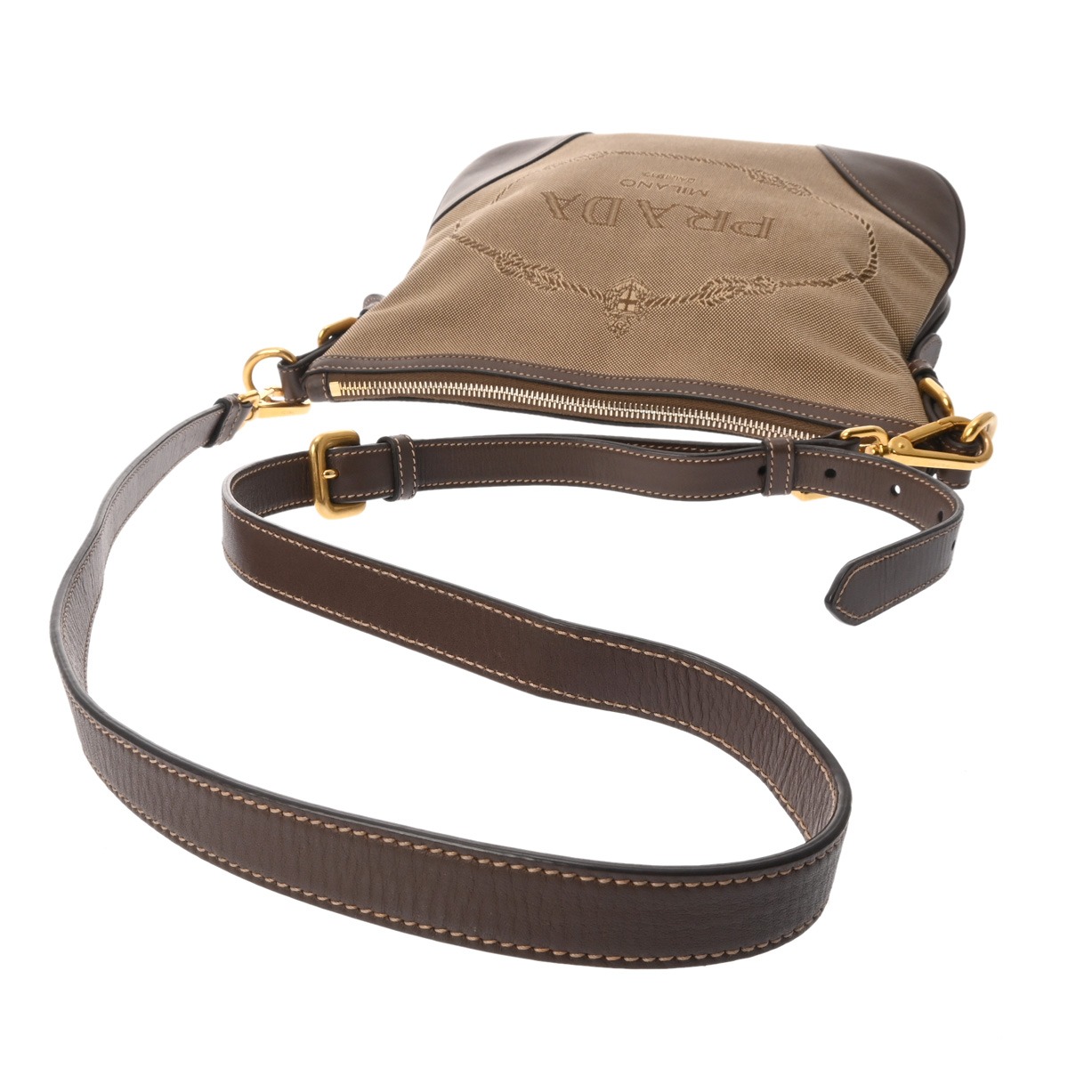 プラダ ベージュ/ブラウン BT867A ロゴジャガードキャンバス レディース バッグ 【中古】【bag】