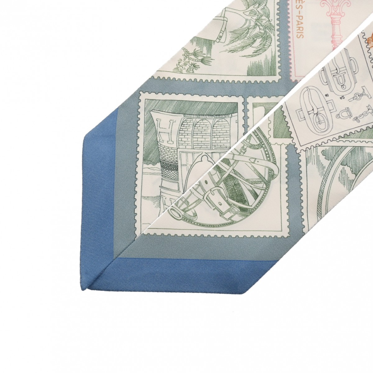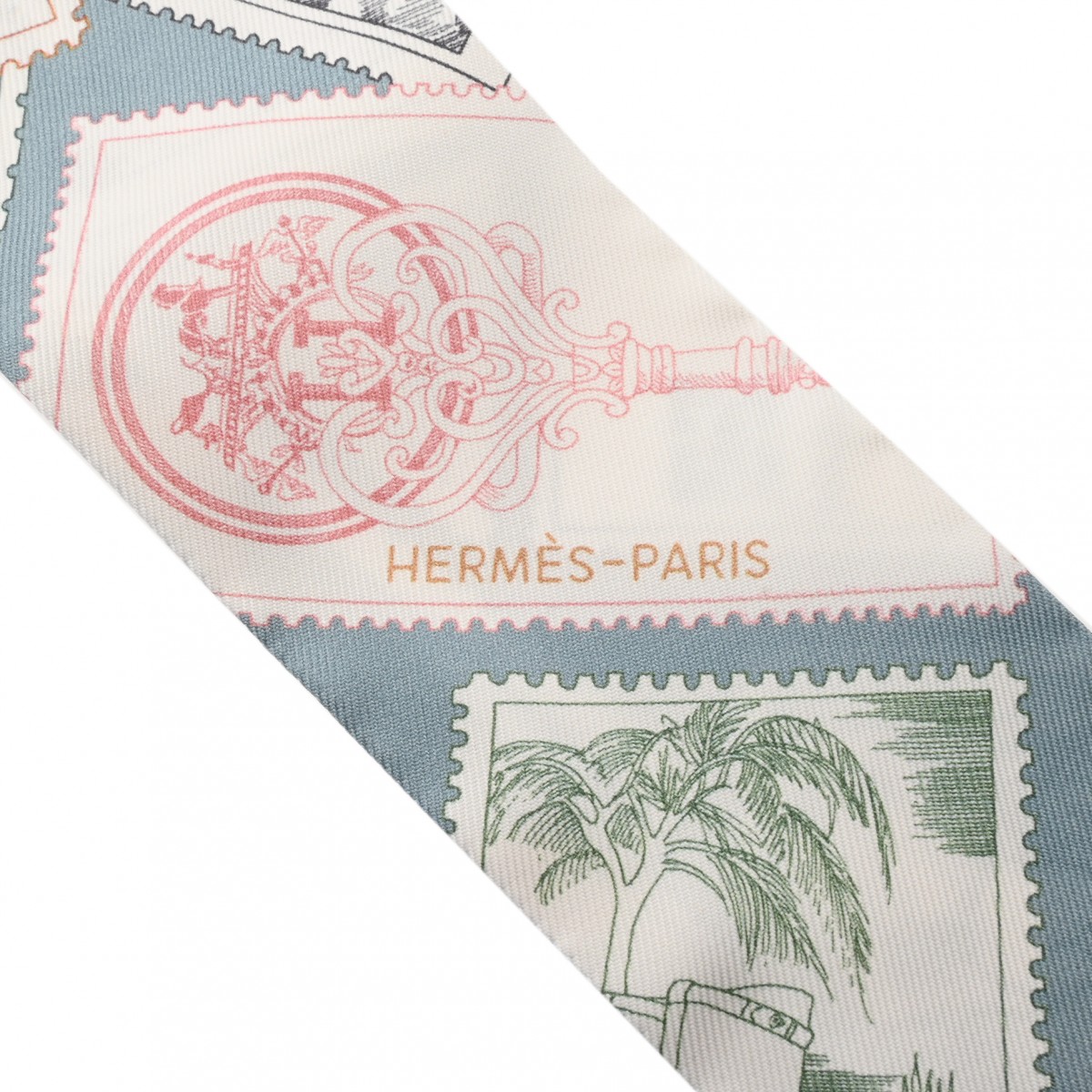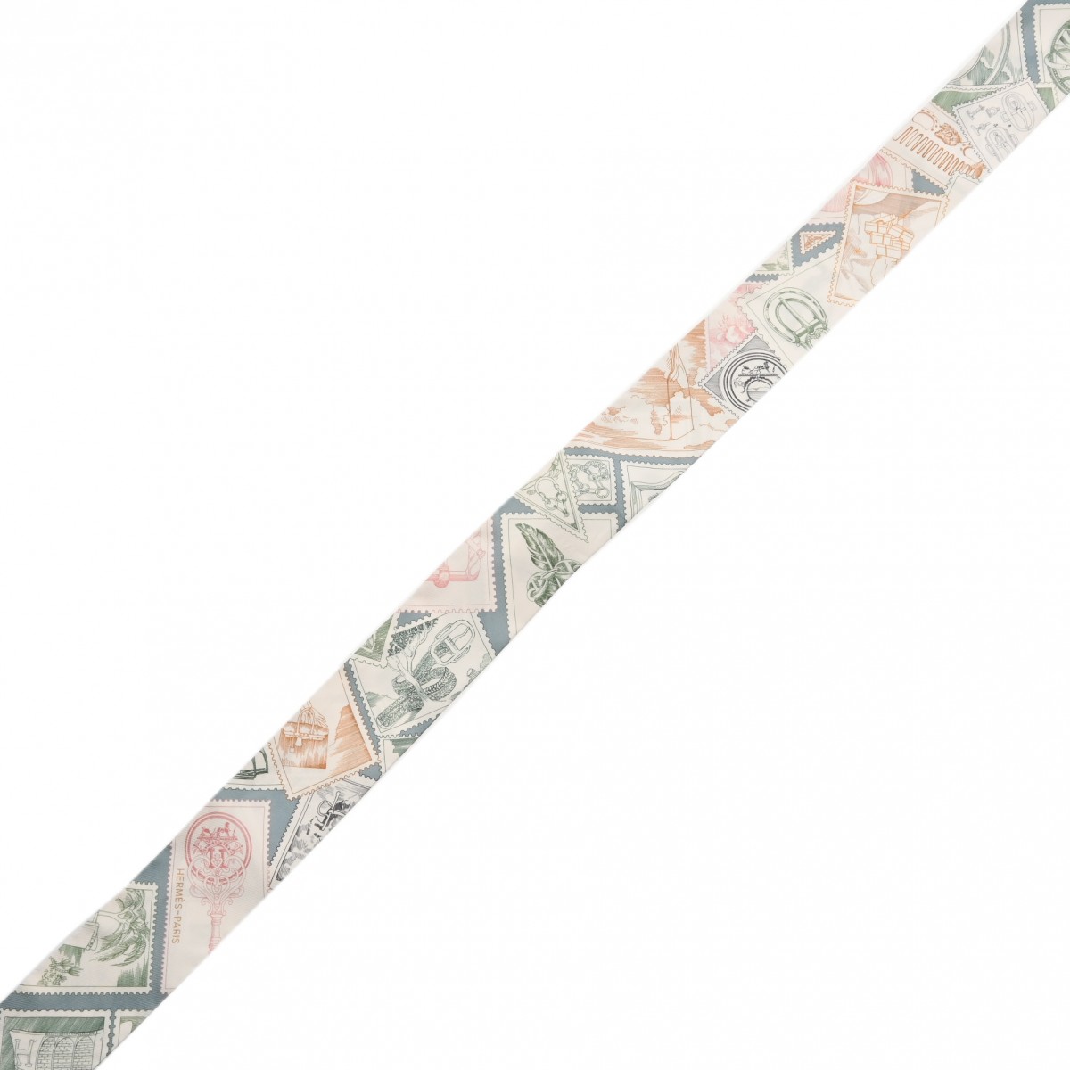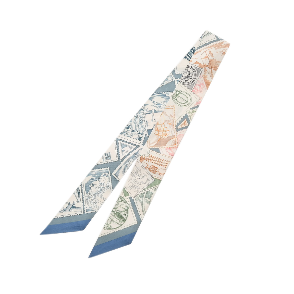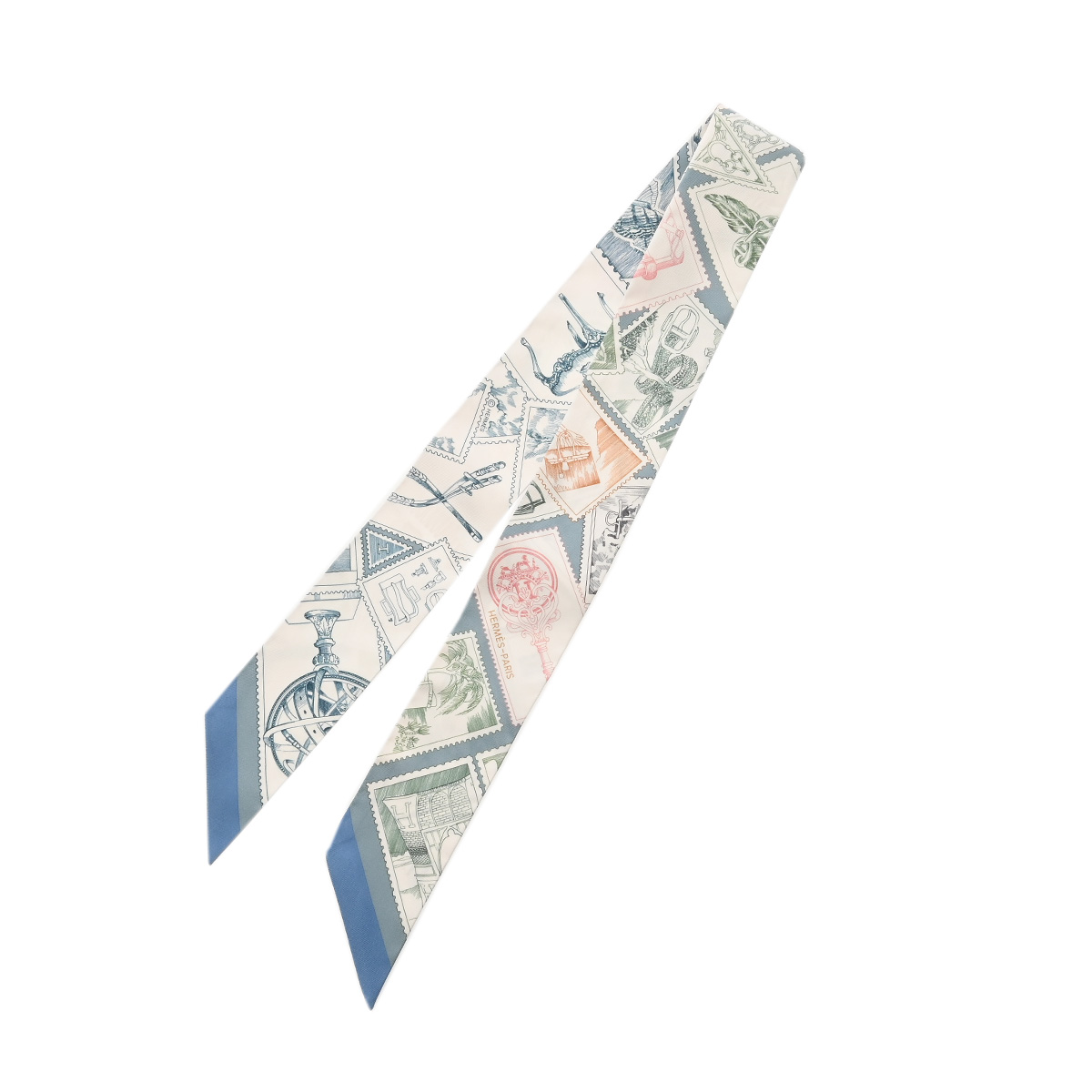 エルメス ツイリー STAMPS OF FAUBOURG ホワイト/マルチカラー シルク100% レディース 【未使用】【other】