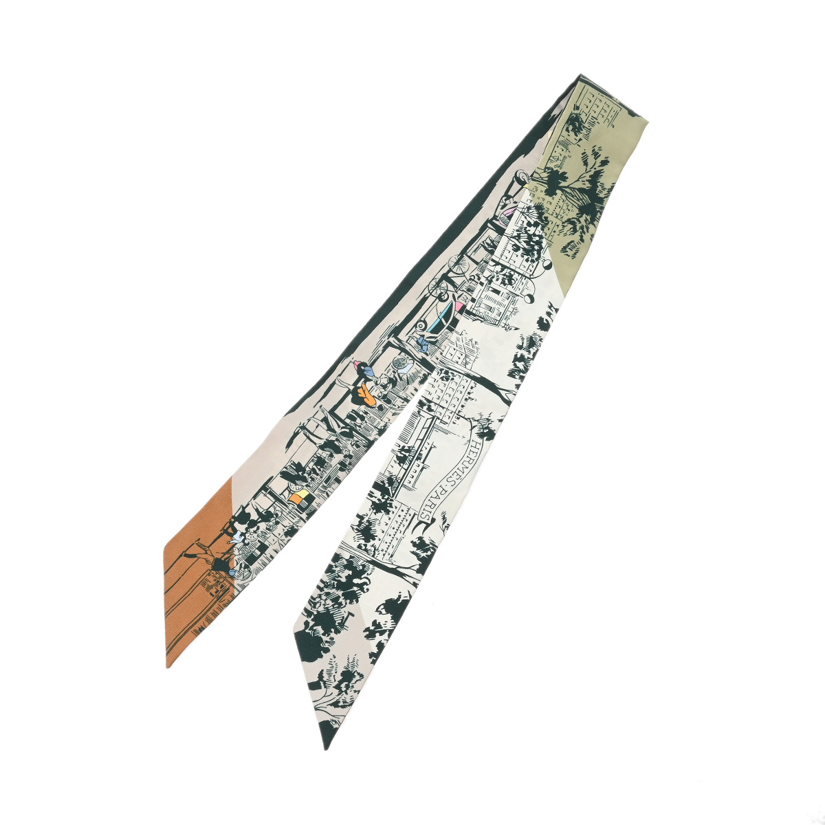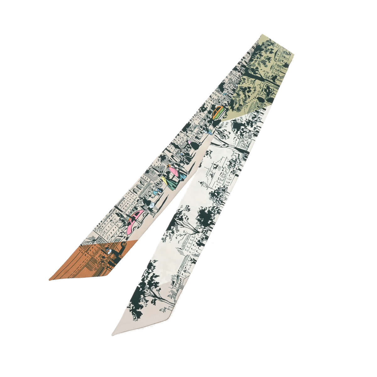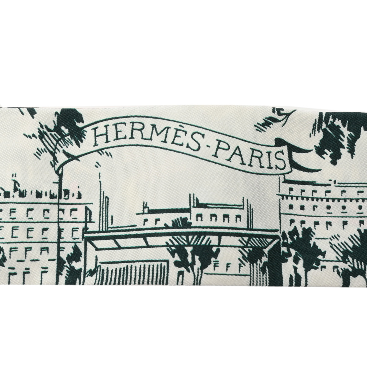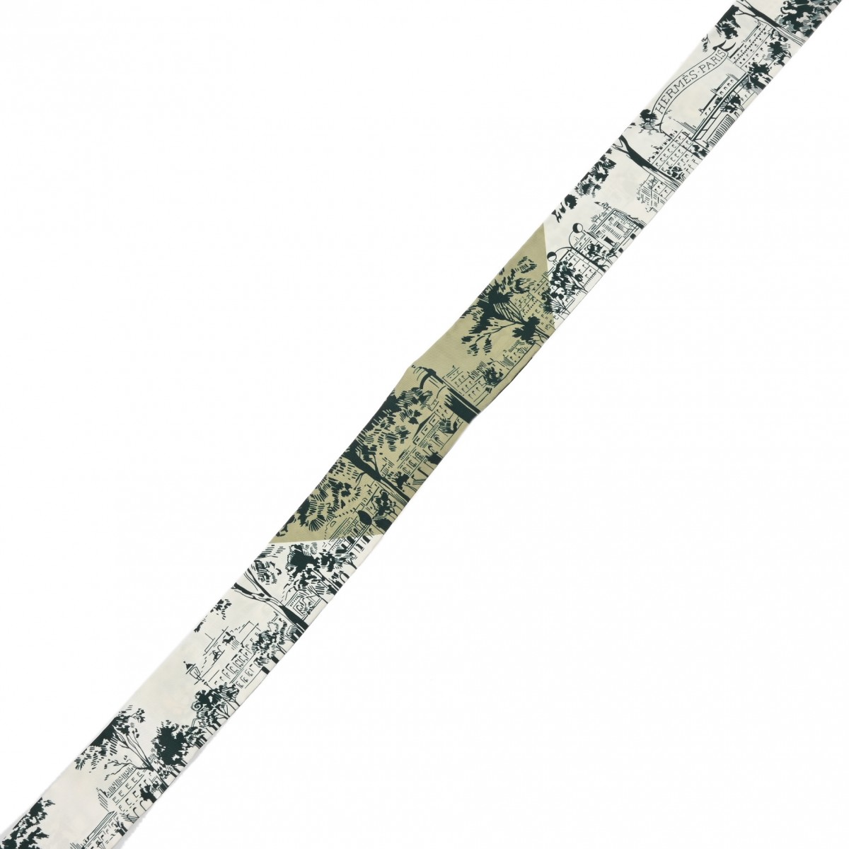 エルメス ツイリー A LOMBRE DES BOULEVARDS ホワイト/グリーン系/マルチカラー シルク100% レディース 【未使用】【other】