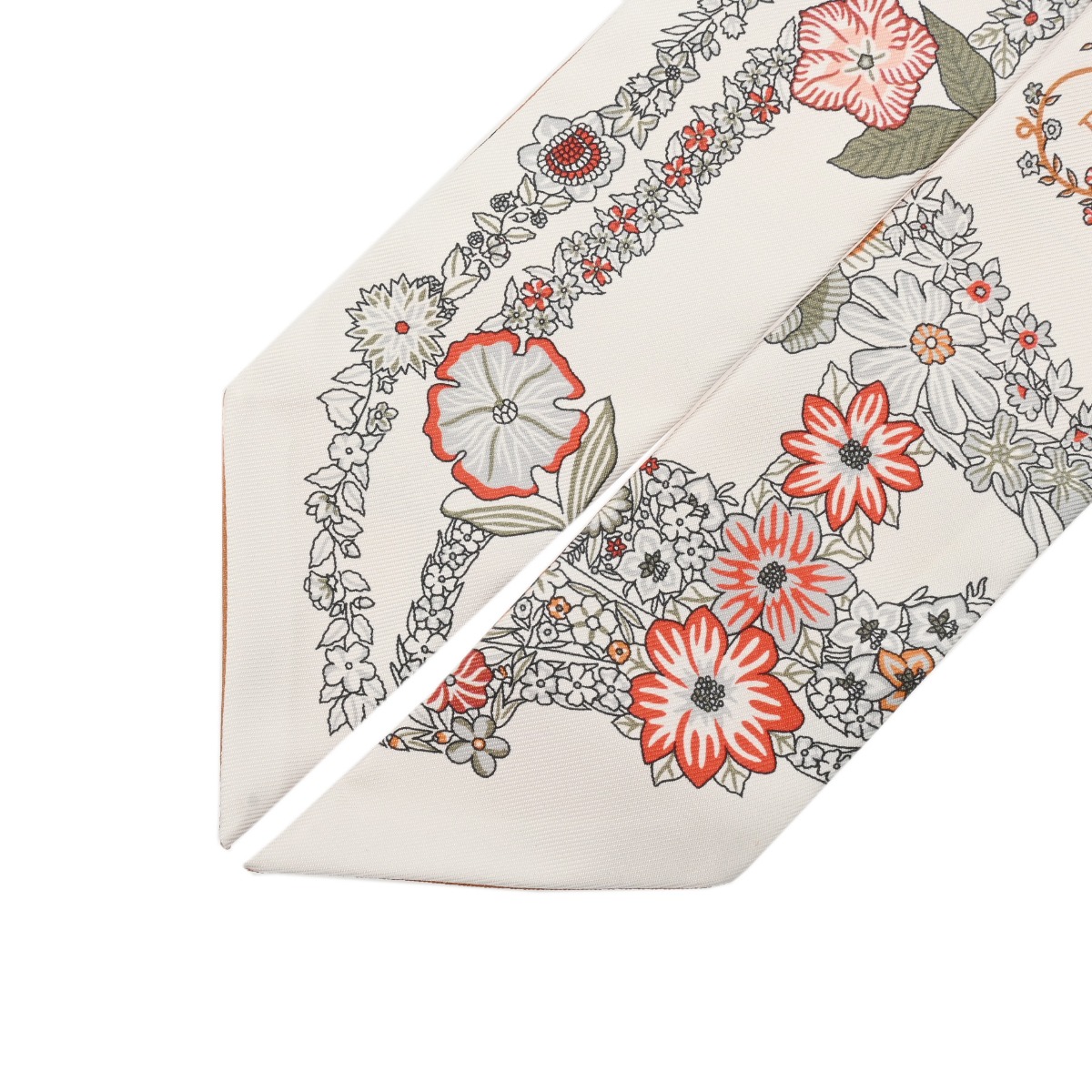 エルメス ツイリー BRIDES DE GALA EN FLEURS ホワイト/ブラウン/マルチカラー シルク100% レディース 【未使用】【other】