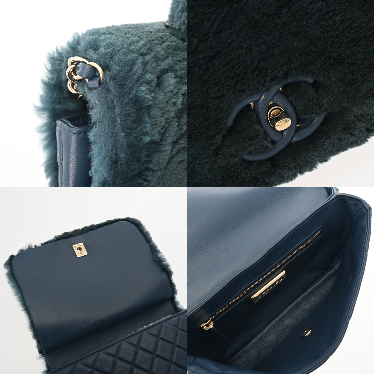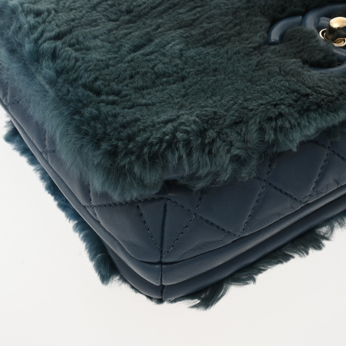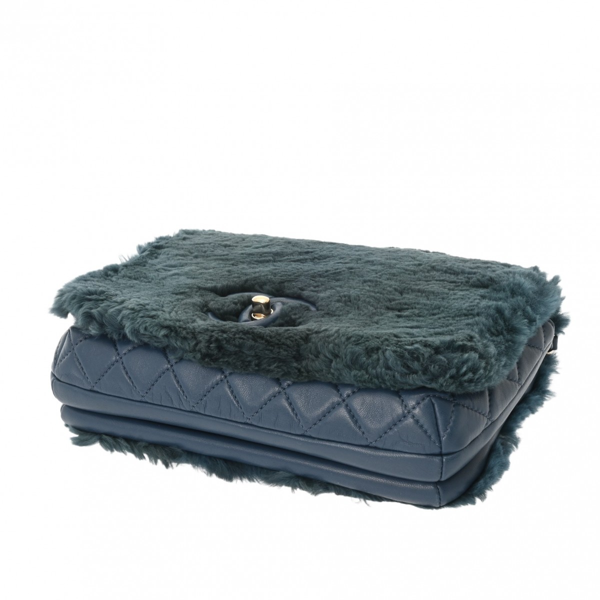 シャネル マトラッセ トップハンドル フラップバッグ ネイビー ファー/カーフスキン レディース バッグ 【中古】【bag】